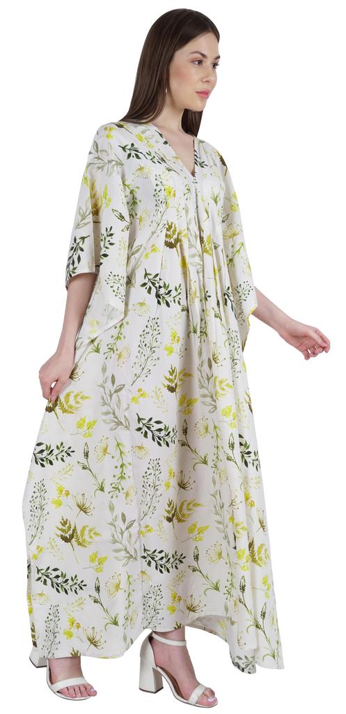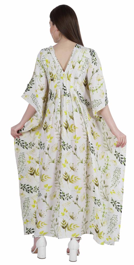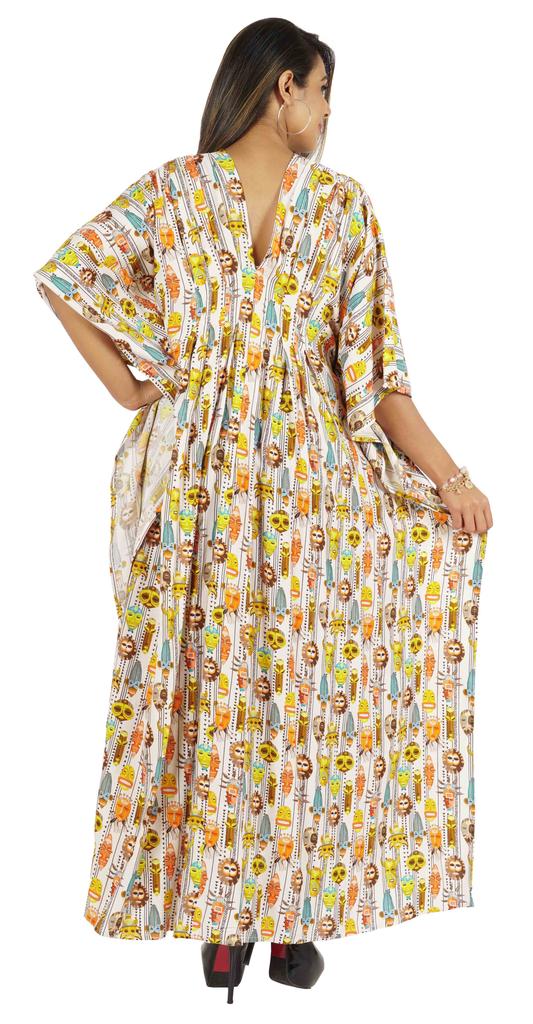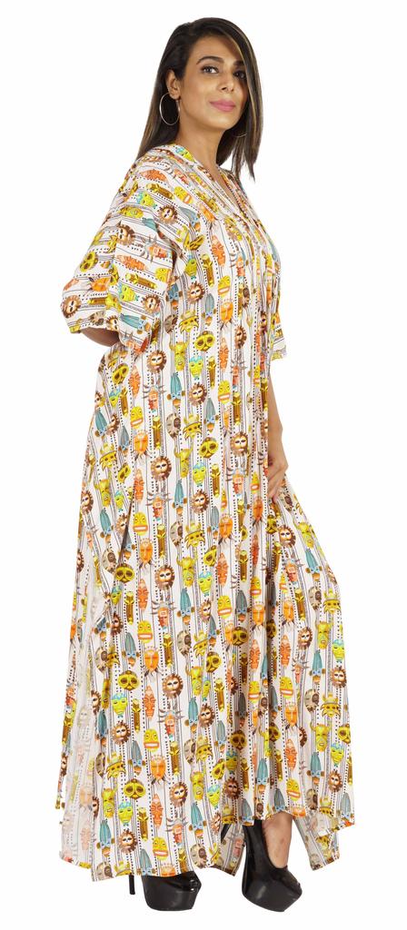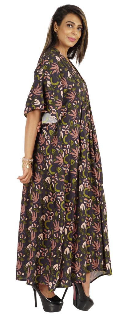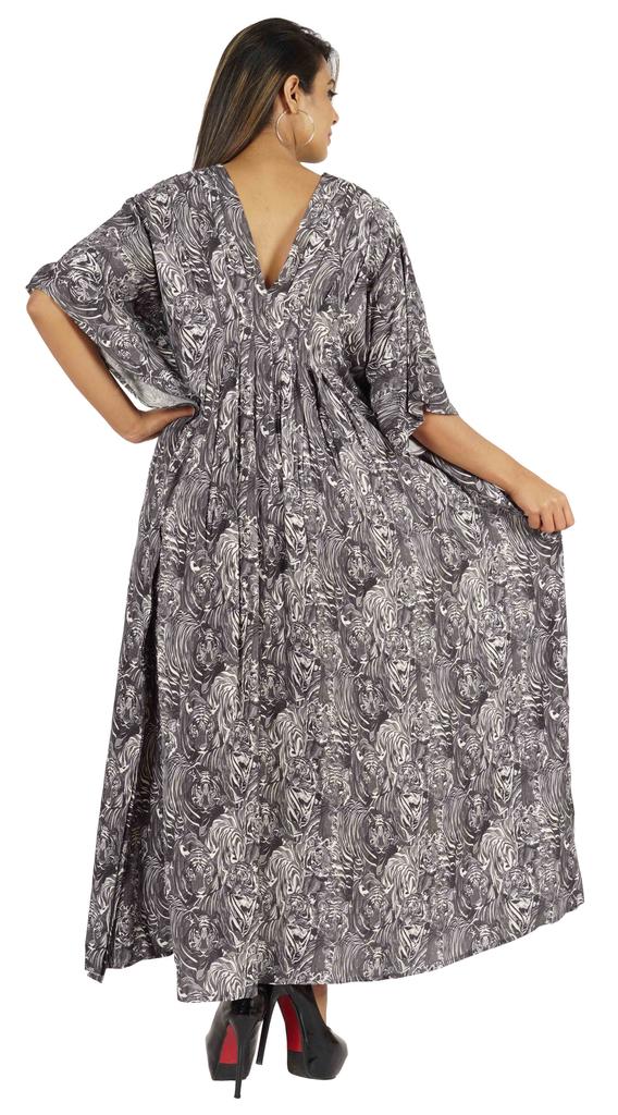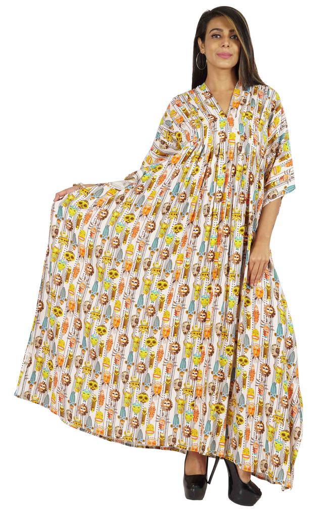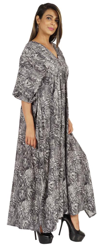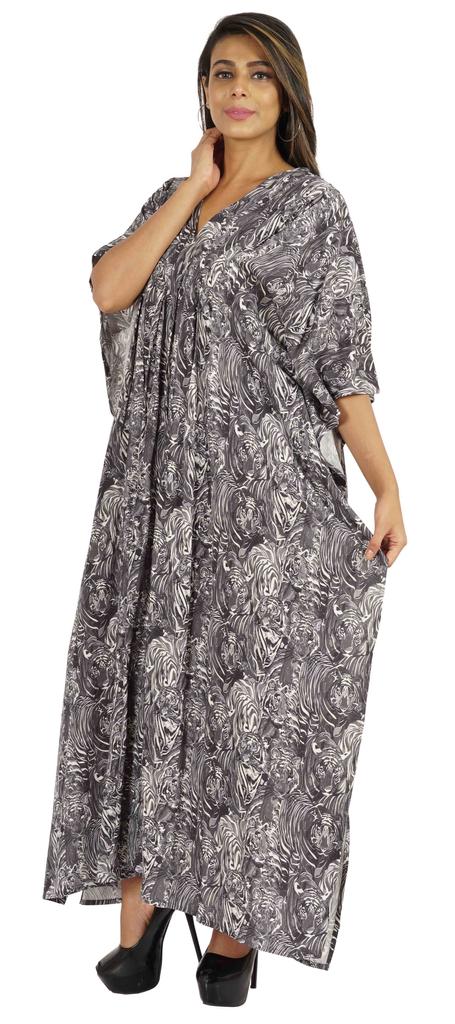 Этот кафтан мумиайя можно носить днем и ночью, как прикрытие от купальника и длинное платье на пляже, а также как платье для сна или даже как макси-платье для беременных.. Боковые полки открыты, благодаря чему люди выглядят великолепно и сексуально.. Принты по всей поверхности, v-образный вырез, разрезы по бокам, длинная длина, длинный плиссированный кафтан, плиссированная деталь на шее, прямой подол.
