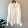 Женская черная рубашка, атласная шелковая блузка на пуговицах с длинным рукавом, женские осенние элегантные романтические офисные женские топы в стиле ретро