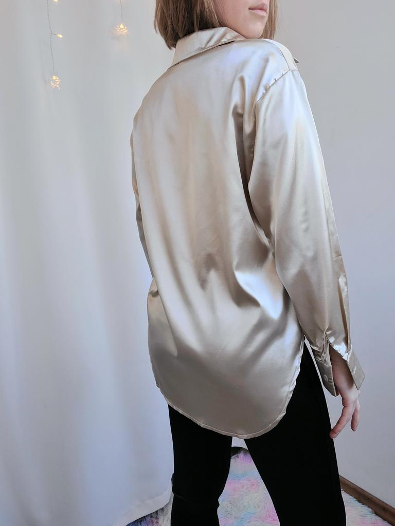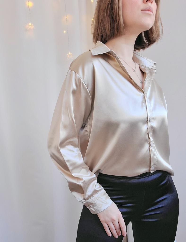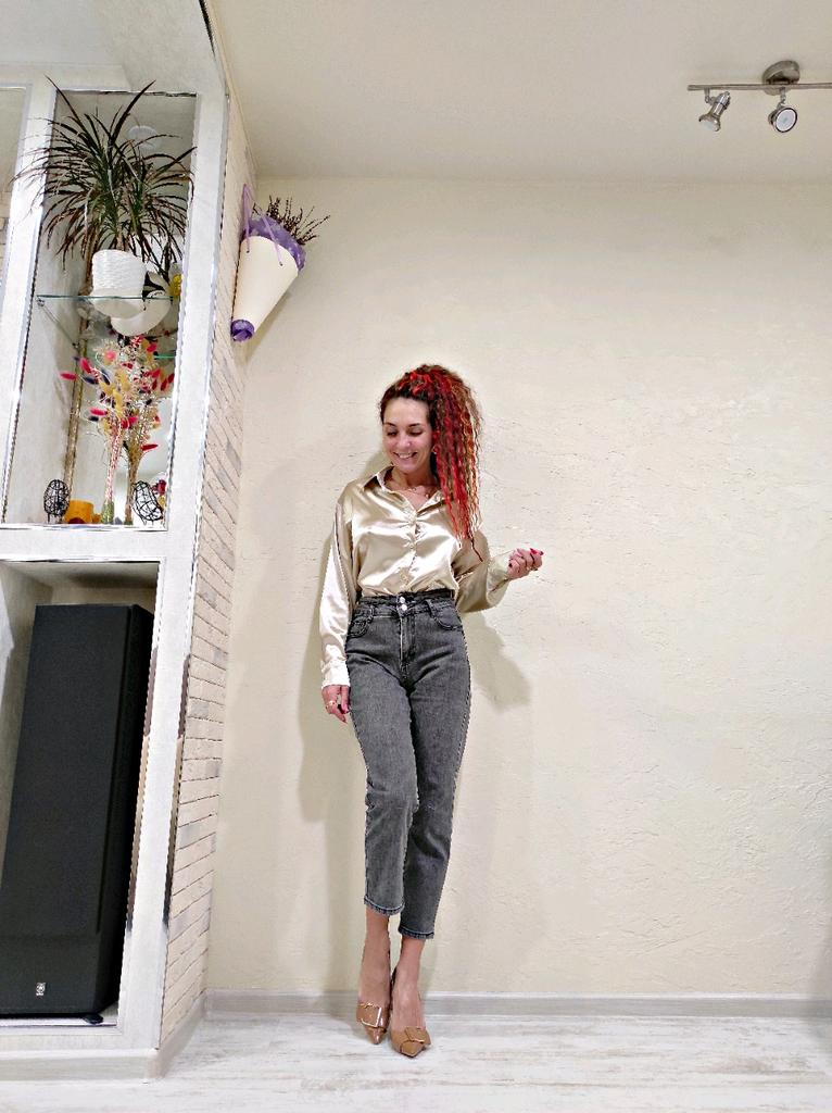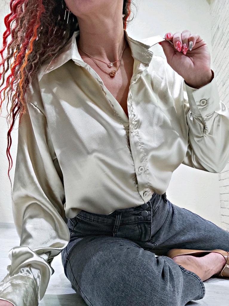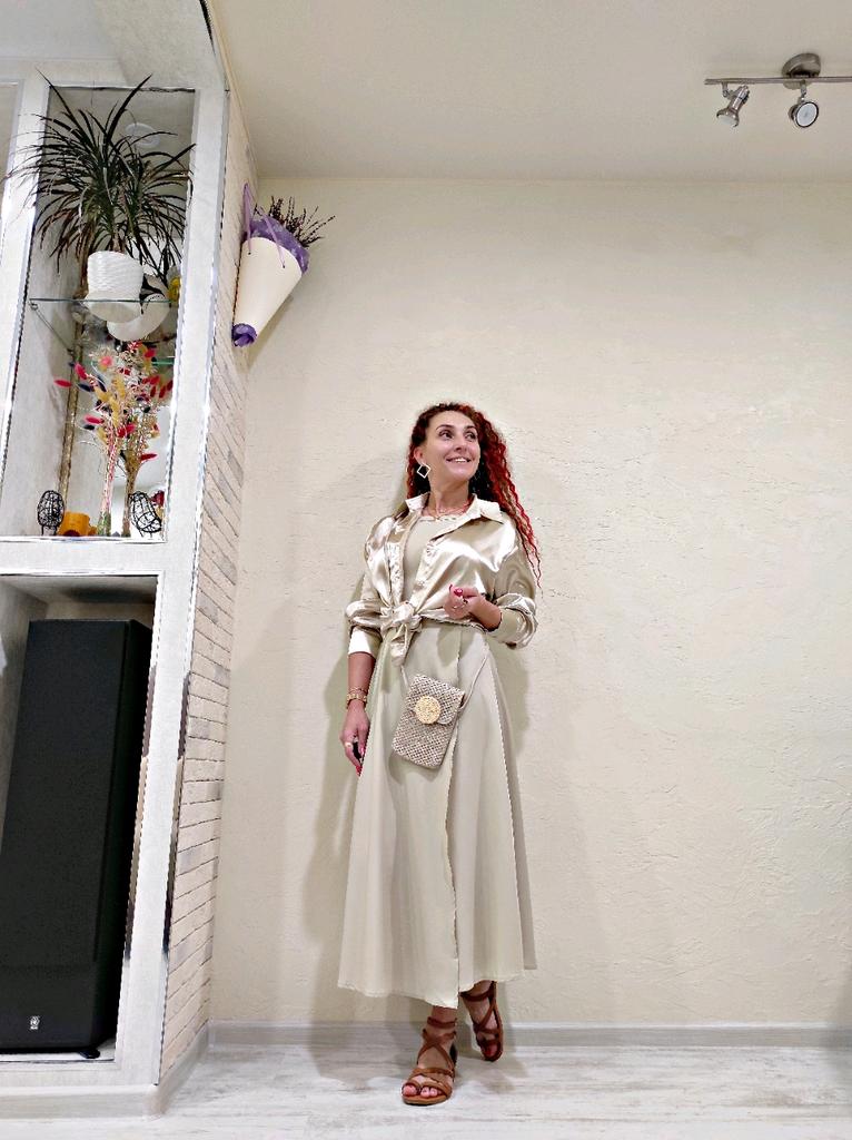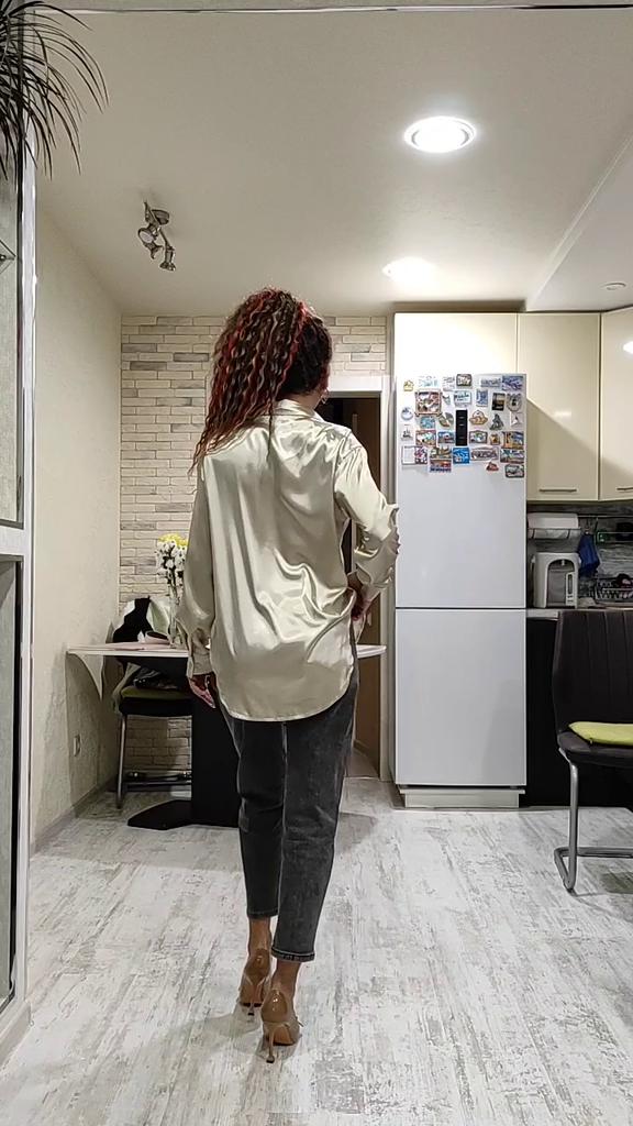 Атласная рубашка цвет шампанского 🥂🍾✨ Всем солнечный приветик 👋😉 Очень нравится задумка таких рубашек с интересным переливом на свету ✨🤩✨ Такого плана рубашка у меня вторая. Первая была от другого продавца (обзор 27 января 2022г.). В этом случае ткань не самая идеальная. Но и совсем "не советую" не скажу, но первая была лучше 😁 Заказала на 2 размера больше, т.е. размер L. Села на мне рубашка, как я и хотела свободно ☺️ Совет: не берите свой размер, берите на размер-два больше. Мои параметры: 🎗рост 160см 🎗вес 53кг 🎗длина плеч 40см 🎗объём груди 93,5см (75D) 🎗объём талии 63см 🎗объём бёдер 92см. Качество: 🥂 ткань синтетика 🍾 ткань тонкая, приятная к телу 🥂 не просвечивает 🍾 мнётся 🥂 немного липнет к телу 🍾 пуговицы от самого горла и почти до самого низа 🥂 воротник как у классической рубашки 🍾 на манжетах по пуговице 🥂 спереди рубашка короче, чем сзади. Точные замеры рубашки в размере L: 📏 ОГ - 110см 📏 ОТ - 106см 📏 объём низа рубашки - 111см 📏 длина рубашки спереди от плеча - 69см, длина рубашки сзади от плеча - 74,5см 📏 длина плеч - 47см 📏 длина рукава - 53см 📏 объём рукава в широком месте - 44см 📏 объём манжеты - 21см. Я рубашкой довольна и буду рекомендовать, а покупать или нет, оставляю выбор за Вами 💞🤗💞 Спасибо, продавцу и Джуму 😘😘😘 Чмок-чмок-чмок, всех кто со мной на Джуме 49 тысяч раз 😘😘😘😘😘 Желаю удачных покупок 🛍😊 терпения 🤗 и весны в душе 🌈☀️🌱🦋🌼💕🐞🌳🕊 До скорого 🙌😊 Песня во втором видео: Arilena Ara "Nentori" (Bess Remix) 🎶💃🎶
