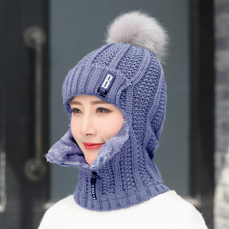 Женская шерстяная вязаная шапка, комплекты лыжных шапок для женщин, ветрозащитная зимняя уличная вязаная теплая толстая сиамская шапка с воротником, теплая шапка — купить товар онлайн с бесплатной доставкой по всему миру!