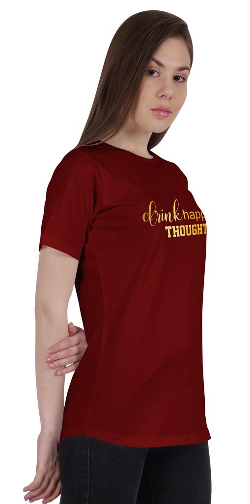 Inkmeso стремится предоставлять продукцию высочайшего качества и хорошее обслуживание клиентов.. Эта футболка имеет базовый стиль, придающий вам шикарный вид, и этот топ не подведет.. На этой футболке есть типографская цитата: «Пей счастливые мысли». Она из удобной эластичной ткани, обычного кроя, с принтом, круглым вырезом, коротким рукавом, длиной до талии, футболкой с графическим рисунком, изогнутым подолом, повседневной одеждой.