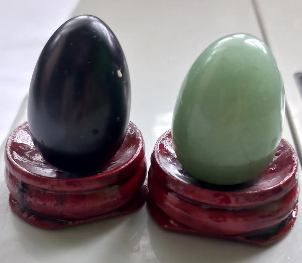 Яйца из натурального камня, но очень маленькие, меньше подставки, на ней не стоят, ложаться на бочек. Для украшения интерьера, так себе. Но для работы с чакрами вполне подойдут
