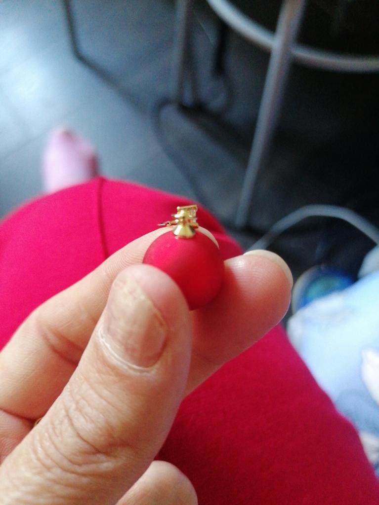 У одной серёжки брак. Отверстие, и две вмятины, плюс видно, что серёжка не целая - посередине видно линию соединения. Для такой цены это непозволительно!