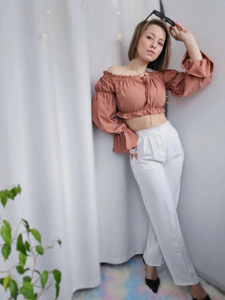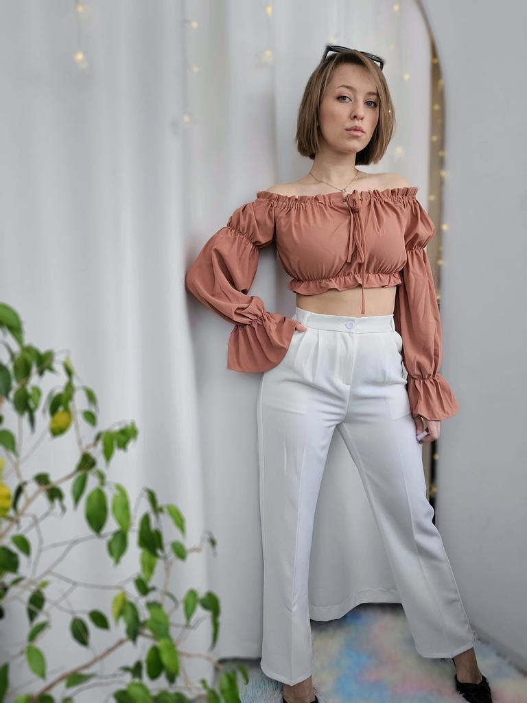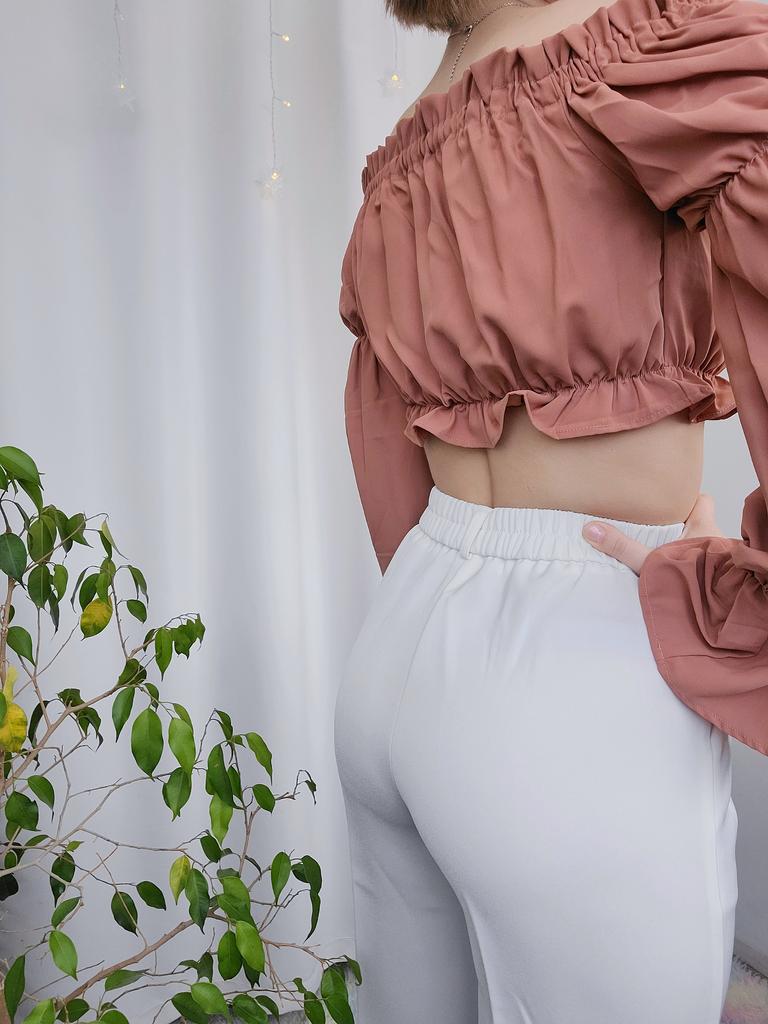 Невероятно крутые брюки-палаццо 😊 На выбор 2 расцветки, заказла белые и не прогадала. Подходят вообще ко всемуууу😀👍 🎀Мои параметры🎀 📏Рост 161 📏ОГ 88 📏Объем под грудью 73см 📏ОТ 67 📏ОБ 96см 📏Вес 56кг 📏Ширина плеч 42 см 📏Длина руки до кисти 60 см 📏Охват бедра 54см Размер М хорошо сел, длина отличная. На рост 170 уже будут коротки. Брюки застёгиваются на молнию и пуговицу, спереди имеются вытачки, брючины прямые, есть шлевки для ремня и утягивающая резинка на спине. И спереди и сзади смотрятся потрясно. Материал лёгкий, приятный к телу, не просвечивает сильно. Только карманы сильно выделяются🙄 Выполнено все отлично. Гуляющих строчек нигде нет. Всё аккуратно сшито. Выточки ровные, без перекосов. Брючки тянутся👍 В целом очень комфортная модель, талия завышена, по росту тоже отлично. Даже с каблуком 11 см. До Саратова заказ шёл 2 недели, покупкой я довольна! Поэтому смело можно брать⭐⭐⭐⭐⭐