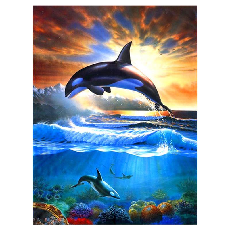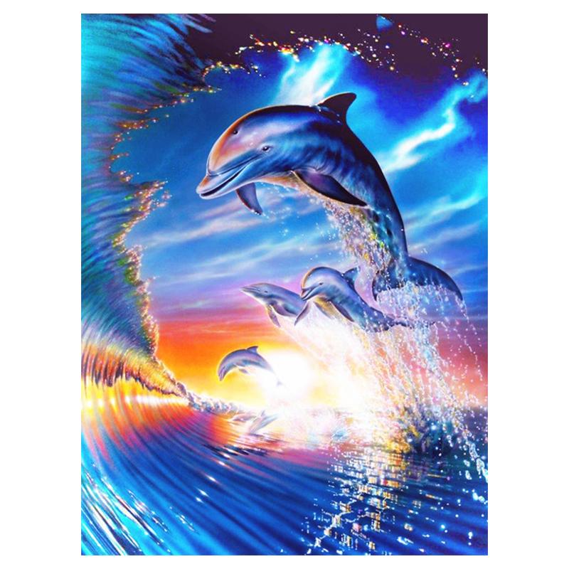 Diy 5D алмазная живопись Дельфин наборы крестиков вышивка мозаика животные художественная картина из страз подарок для рукоделия домашний декор
