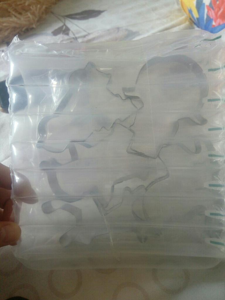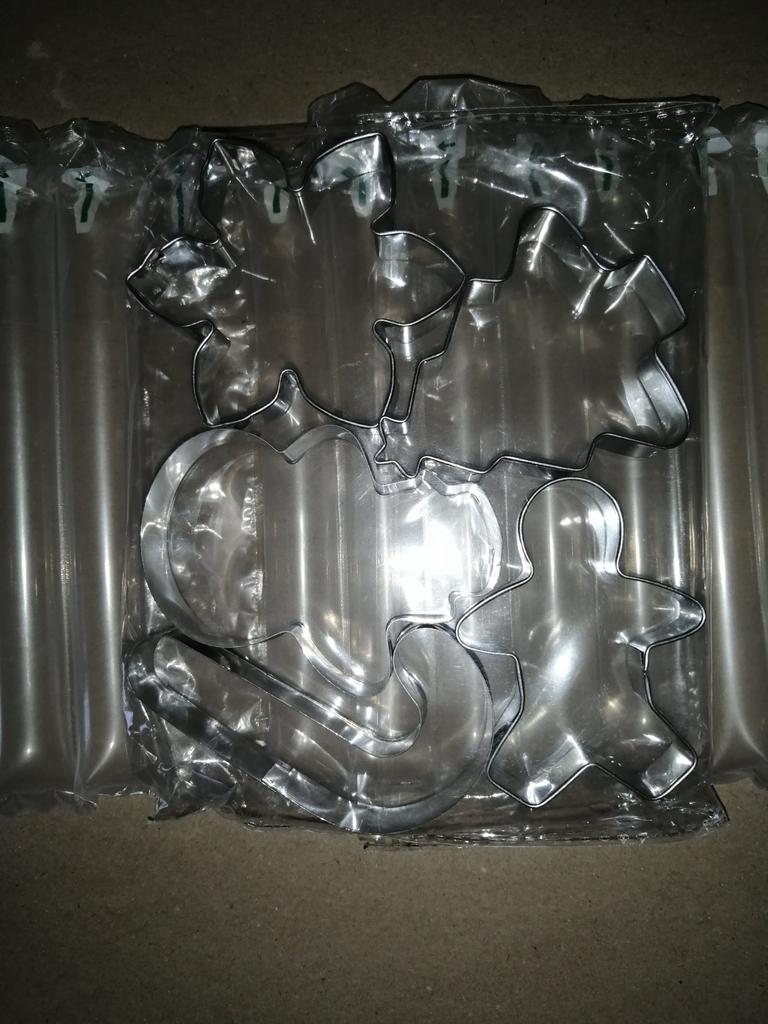 Заказ был сделан 14-го февраля, доставлен 20-го марта (доставка была отслеживаемая за небольшую плату). Упаковано было отлично в воздушный пакет, учитывая, что сами формочки металлические, у них не было шанса повредиться. Формочки отличного качества: не слишком тонкие, а поэтому легко не гнутся. Думаю, что при аккуратно использовании прослужат довольно долго. Единственный минус — продавец отправил не тот набор. Он все равно симпатичный и новогодней теме соответствует, меня это устраивает. Но все же это оплошность со стороны продавца, и кому-то такая ошибка может быть принципиальна, поэтому звезду снимаю (чтобы приняли во внимание и исправились). В общем и целом к заказу рекомендую, спасибо!
