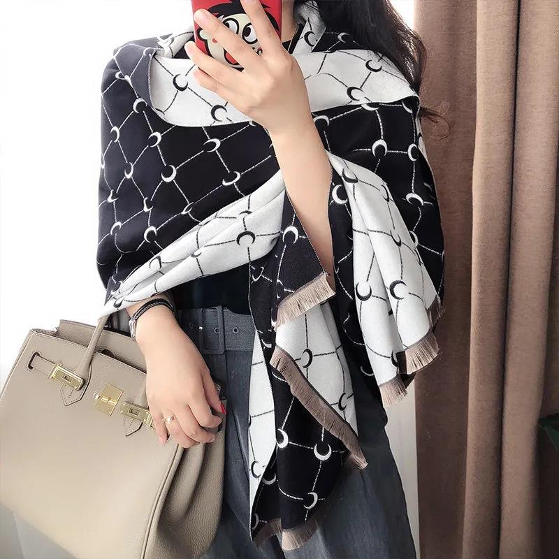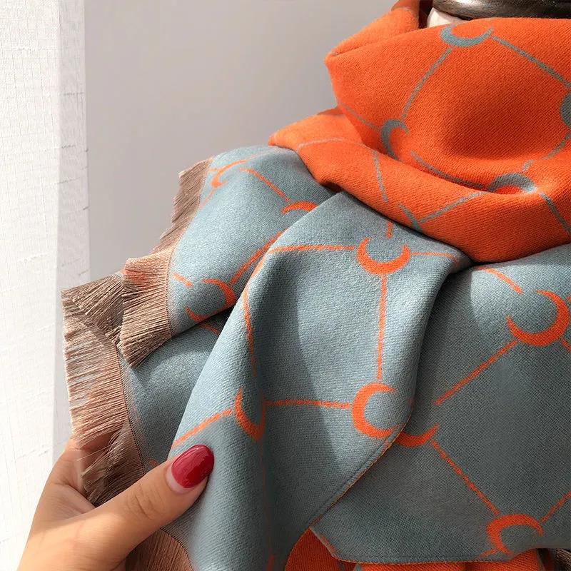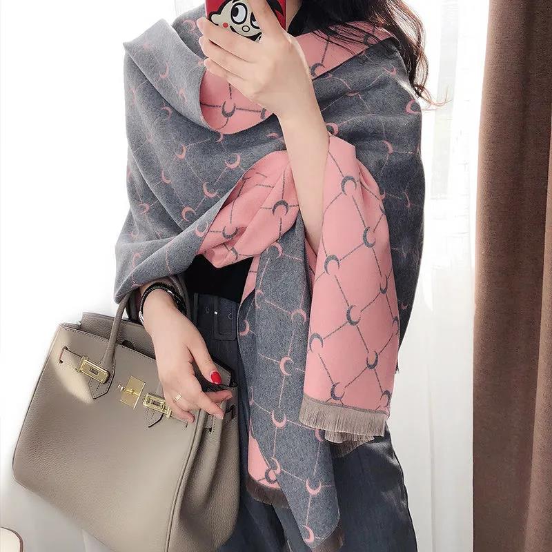 Двусторонний лунный шарф, женский зимний корейский вариант дикого двустороннего однотонного шарфа, длинная толстая теплая шаль