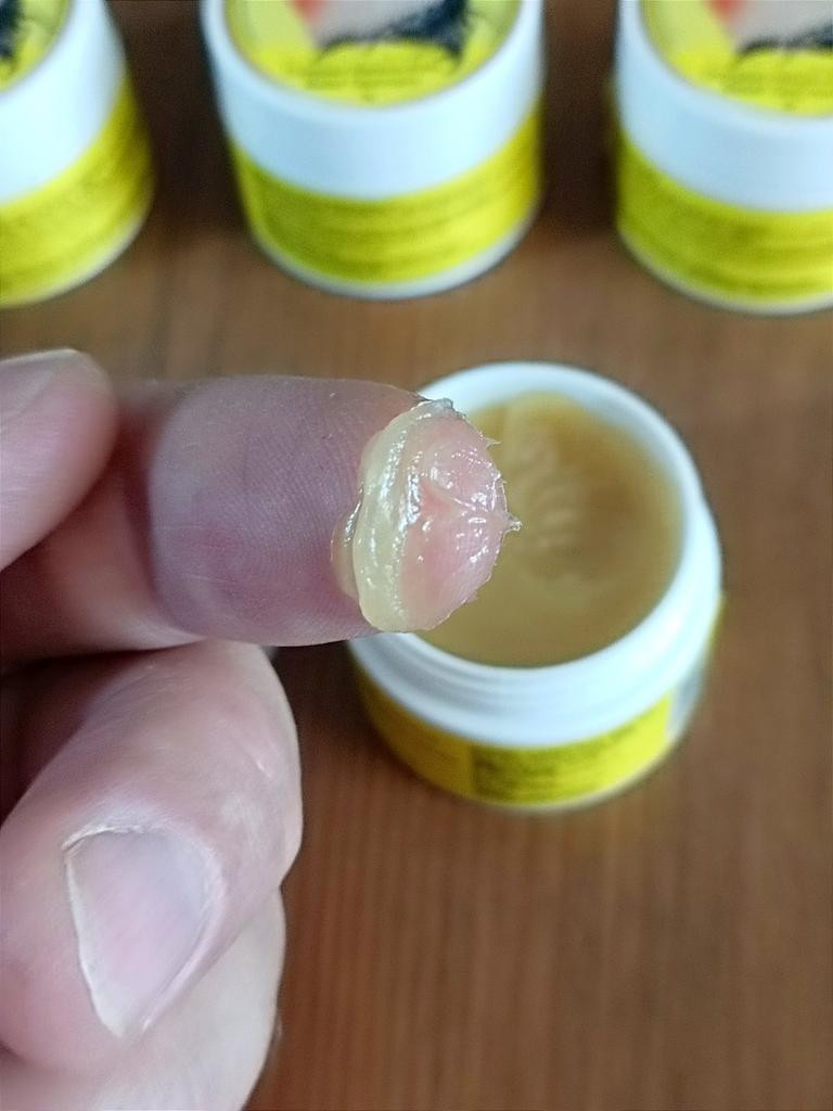 Посылка шла два месяца.Баночки очень маленькие,но зато удобно брать с собой.Сразу скажу что данным товаром уже пользовалась брала у подруги что называется на пробу по этому и заказала для себя. После использования боль утихает, конечно не сразу, нужно пользоваться систематически. Сперва может быть жжение,лёгкое покраснение, нужно привыкнуть и если не проходит то лучше не пользоваться,я аллергик и ко всему отношусь с осторожностью,мне подошло данное средство. Его можно использовать так же при ушибах,синяках, только конечно если нет кожных повреждений,даёт лёгкое тепло, пахнет травами и скипидаром.Если отзыв кому то важен,то приобретайте.Срок годности тоже хороший. Спасибо продавцу, как закончатся буду заказывать ещё.