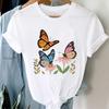 Повседневная одежда с бабочкой, женская одежда с цветочным принтом 90-х годов, женская одежда с коротким рукавом, модная одежда, футболка, женская футболка с графическим принтом