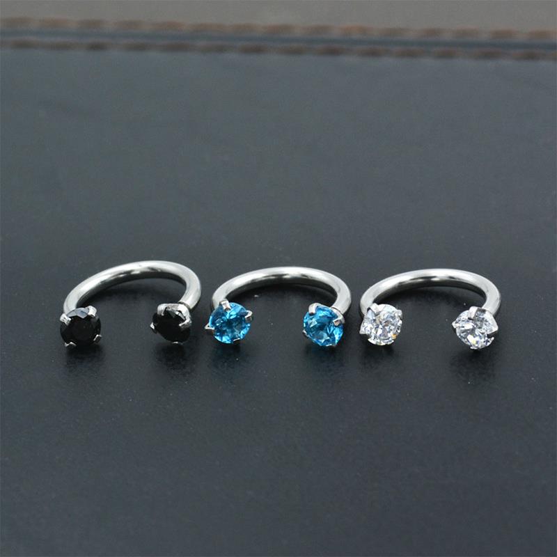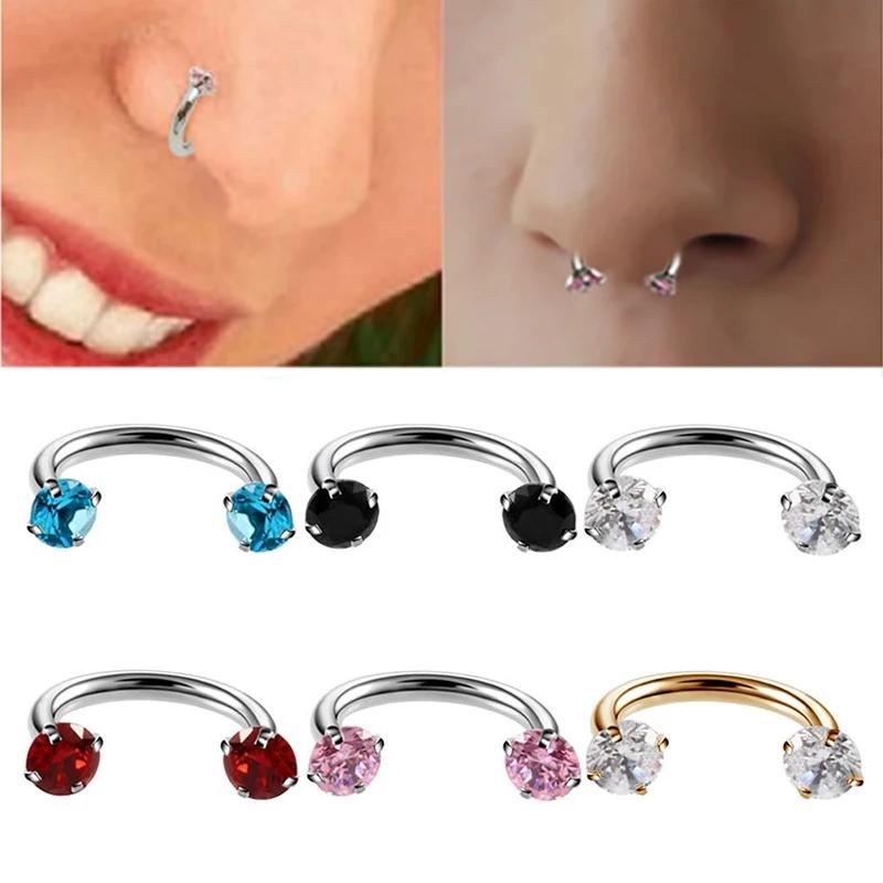 Титановый шарнирный сегмент, двойной бриллиант U-образной формы, кольцо в носу, кликер, ушной хрящ, спираль козелка, губ, пирсинг, модные украшения