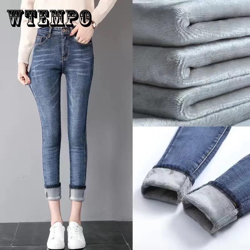 Плюс бархатные толстые джинсы. Женские зимние универсальные брюки с высокой талией и девятью точками на маленькой ножке, чтобы согреться, и тонкие брюки из бархата. — купить товар онлайн с бесплатной доставкой по всему миру!