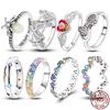 BAMOER стерлингового серебра 925 пробы Регулируемые Радужные красочные звезды любовь сердце роза открытые кольца для женщин женские оригинальные ювелирные изделия