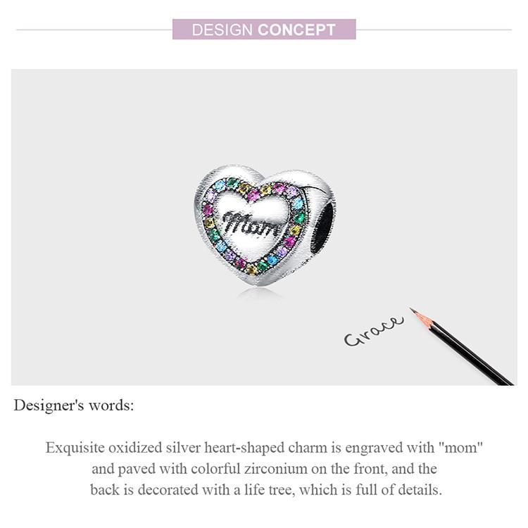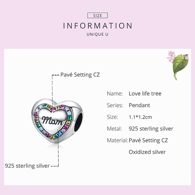 BAMOER Радуга циркон в форме сердца Шарм из стерлингового серебра 925 пробы Love Life Tree бусины подходят для женщин браслет или браслет ювелирные изделия