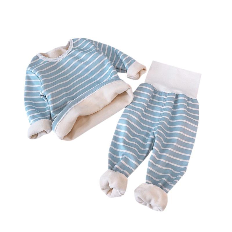 2. Детская лаунж-одежда костюм осенне-зимний девчонок полосатый хлопчатобумажный свитер с высокой талией детское термобелье плюс флисовая пижама, чтобы ваш ребенок выглядел красиво и модно.