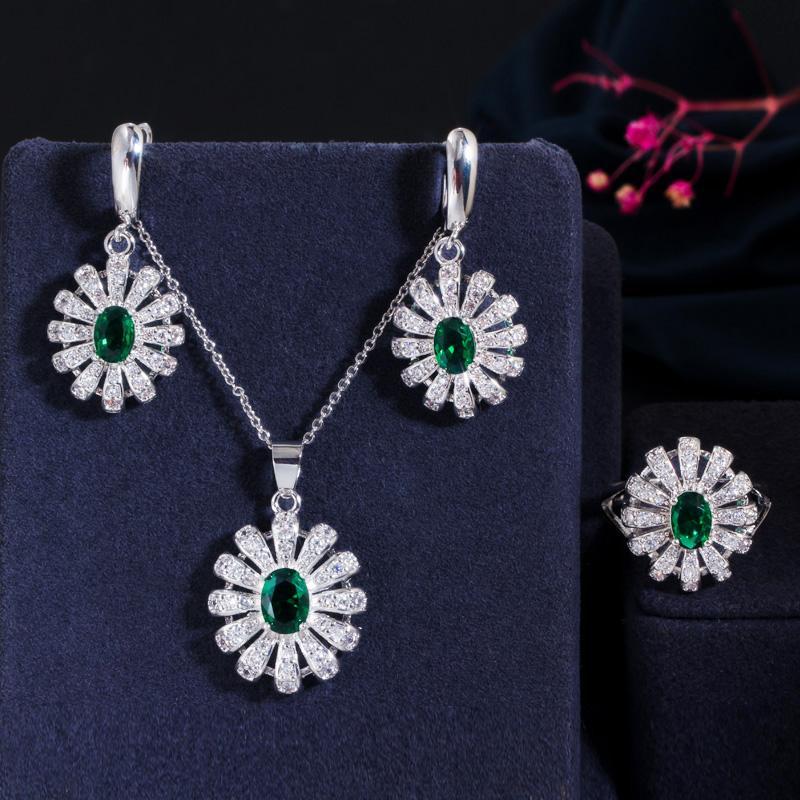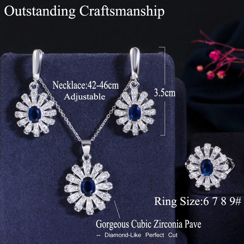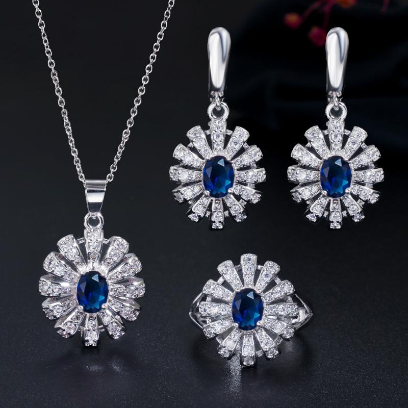 WWJ корейский дизайн кубический циркон солнечный цветок кольцо серьги кулон ожерелье комплект из 3 предметов
