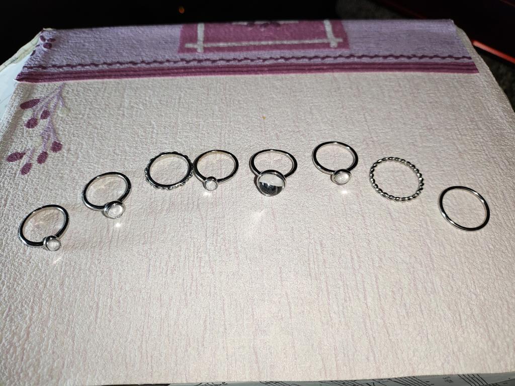 Красивые колечки, качество хорошее. Но минусы все же есть, колечки намноого меньше, чем на фото, размеры маленькие, и немного отличаются от фото, пришло за 28 дней. Но то, что меньше, чем на фото, большой минус.
