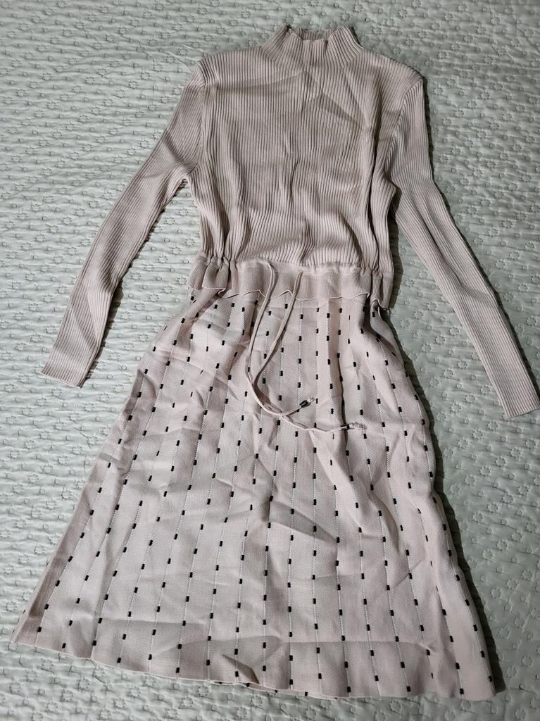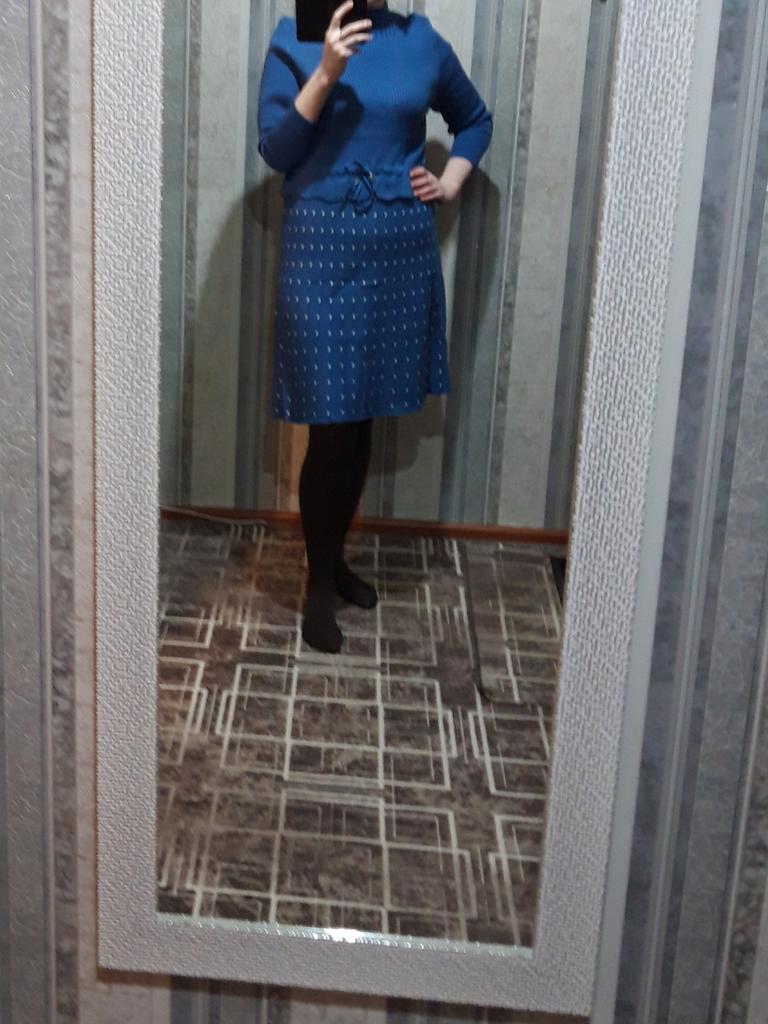 Пришло платье. Из плюсов: цвет красивый,что-то между синим и голубым,размер вроде мой,плечи на месте. Сразу скажу,если бы я взяла на размер больше,то плечи,соответственно спустились бы и вид потерялся. Качественно сшито,тёпленькое. Из минусов: на рукавах торчат нитки(не много,что,в целом,не критично),рукава если спустить по полной длинне,то до запястия не доходят совсем,сантиметров 10 точно,получается с картинкой не совпадает Если рукав вытянуть вниз по длинне,то появляются складки между подмышкой и грудью,поэтому рукава нужно приподнимать на три четверти,чтобы не было складки,у меня верх 44,низ 46 размера и есть животик и в этом платье он выделяется немного,на фото видно,если есть жировые складочки на спине,тоже будет видно. В целом,платье выглядит не плохо,на повседневку пойдёт. Мой рост 163 см.,по росту вроде бы не плохо смотрится. Носить буду. В конце,хочу уточнить ещё раз,что платье чуть-чуть отличается, нежели,чем на картинке,в первую очередь длиной рукава. Купила за 1.611р. с наличием скидочного купона в неделю скидок.