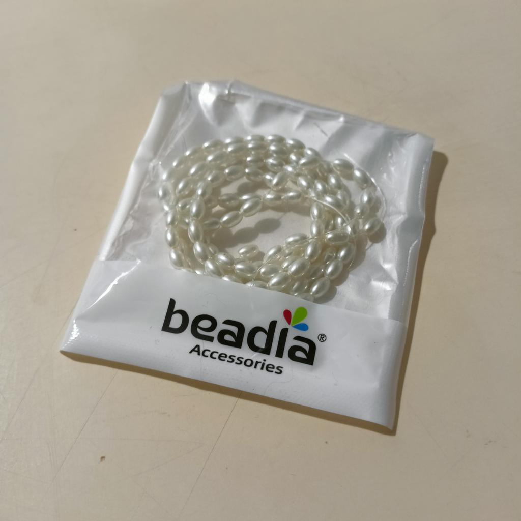Получила бусины цвета слоновой кости под жемчуг в форме риса 4×6 мм. для создания украшений. Покупала со скидкой за 160 р. Доставка 1,5 месяца.