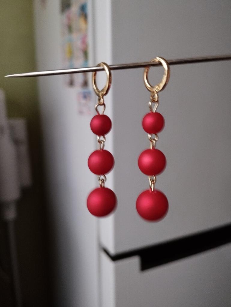 Сережки очень милые. Бархатное напыление на бусинах придает некоего шарма, лёгкие. В подарок был вложен браслетик из красной нити с бусиной застёжкой. Рекомендую.