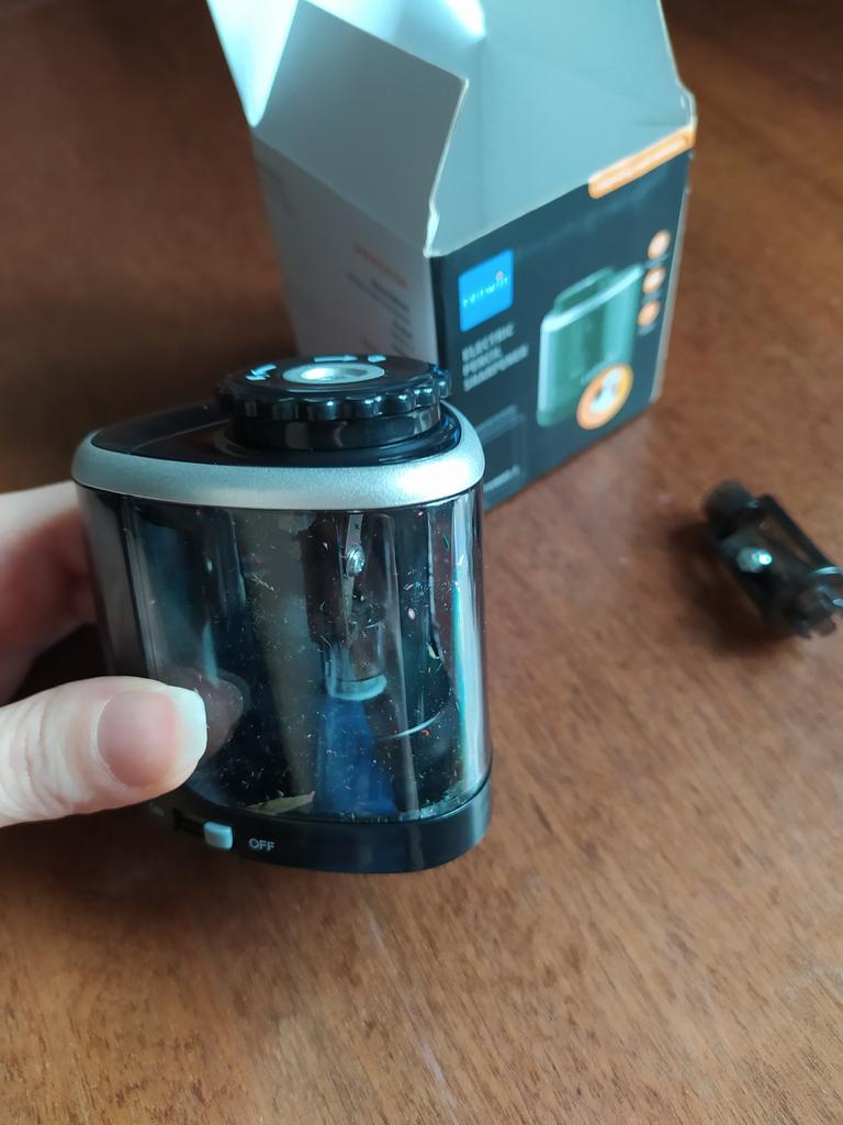 Точилка восхитительная. Сказать, что я в восторге, это ничего не сказать. Пришла, упакованная в пакет с пупыркой. Внутри плотная картонная коробка. Достали точилку, вставили батарейки - и всё. Теперь дома нет тупых карандашей. Буквально 2 секунды на карандаш📝 - и он острый. Дети прекрасно справляются сами. Теперь можно забыть про постоянные просьбы подточить карандаш. Я очень довольна приобретением. Это отличная вещи и для себя, и замечательный подарок друзьям. Товар и продавца рекомендую однозначно.