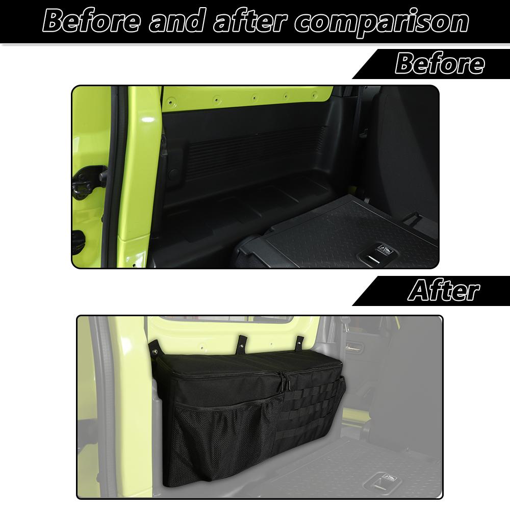 Подходит для Suzuki Jimny багажник левой сумки для хранения, добавляет дополнительное пространство к задней части вашего автомобиля. Несколько отсеков для хранения обеспечивают большую емкость для хранения. Удерживайте вещи от скольжения и удерживайте их на месте. Органайзер для хранения багажника не только обеспечивает больше места для хранения вашего багажника, но и делает организацию автомобиля легкой и простой.