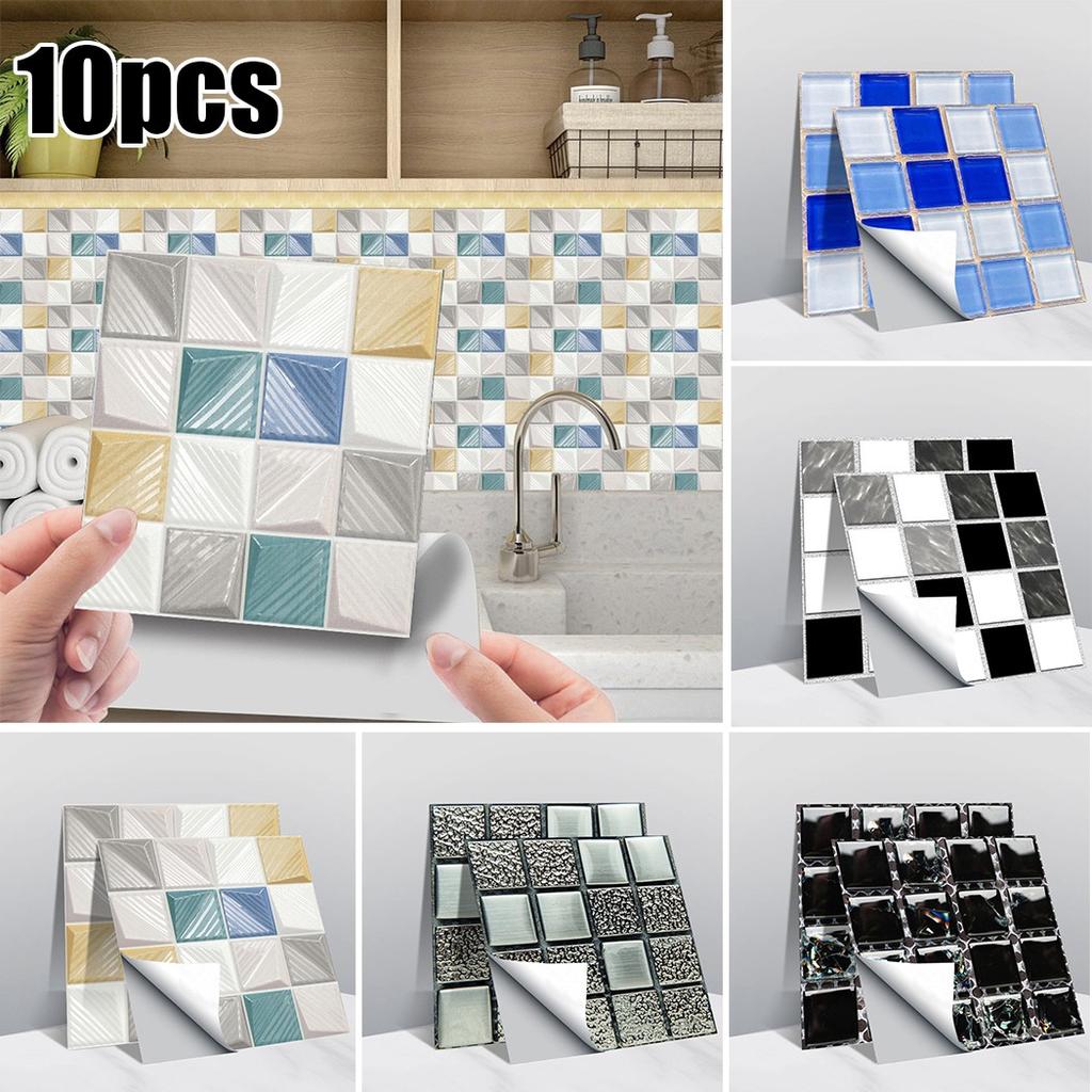 10 шт. блестящая мозаика самоклеящиеся наклейки на плитку для кухни, ванной комнаты, дома 10*10 см
