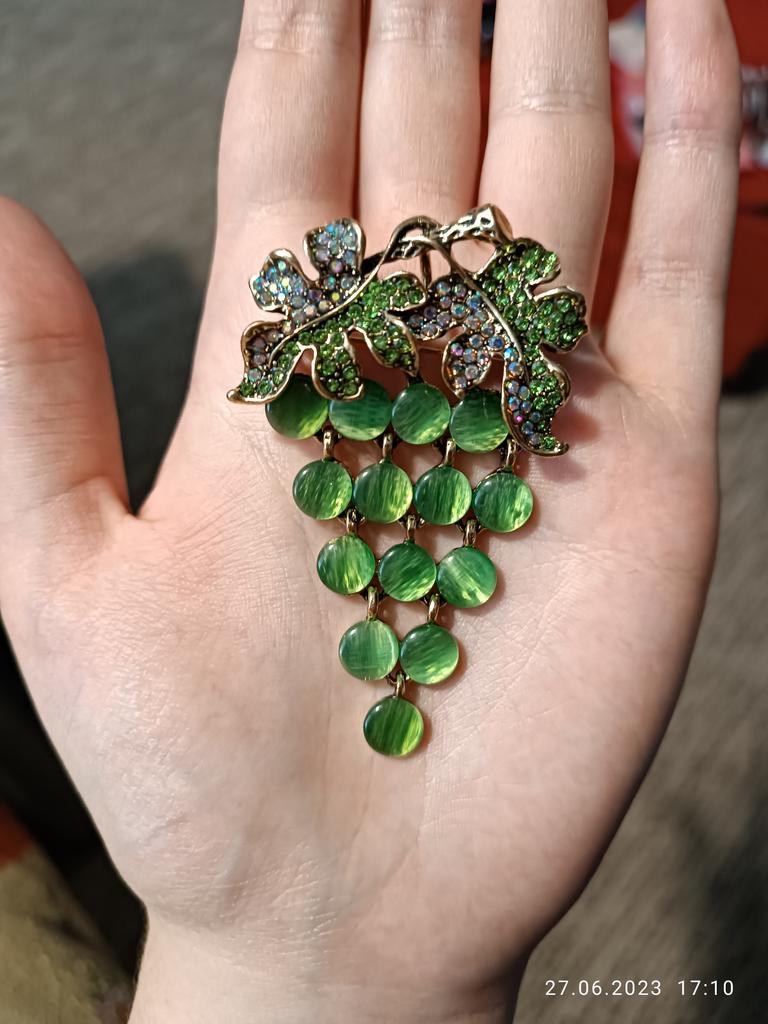 🍇Очень красивая и крупная брошь "Гроздь винограда" 🍇Виноградная гроздь символизирует достаток, плодородие, изобилие и радость 🍇Сделана хорошо, не цепляется 🍇Полностью соответствует промофото 🍇Купила к серьгам-виноградинкам 🍇Наглядно показала и рассказала в видео 🍇Очень мне брошь понравилась, дорого-богато смотрится 👆💯 😊ЯдовольнаЯ 😊 рекомендую к покупке 💯