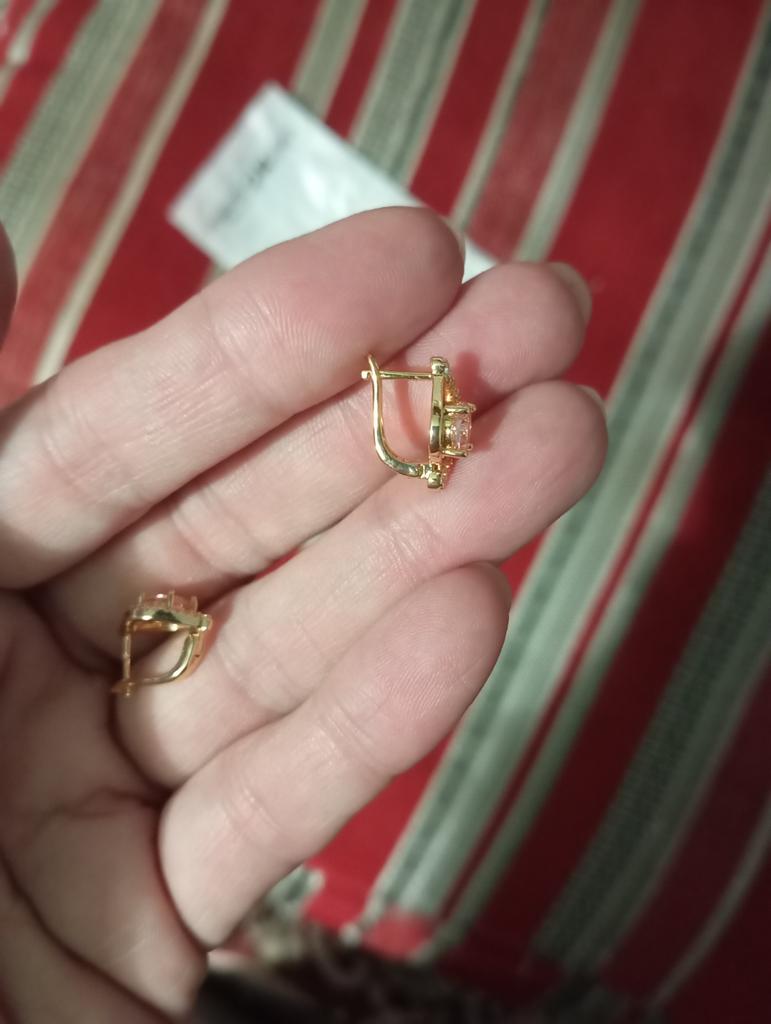 Серьги совсем крошечные, на ребенка 7-10 лет, не старше. На одной сережке нижняя часть застежки, когда не застегнута, болтается в разные стороны. При попытке ее застегнуть не попадает в отверстие. Жаль, сами серьги красивые