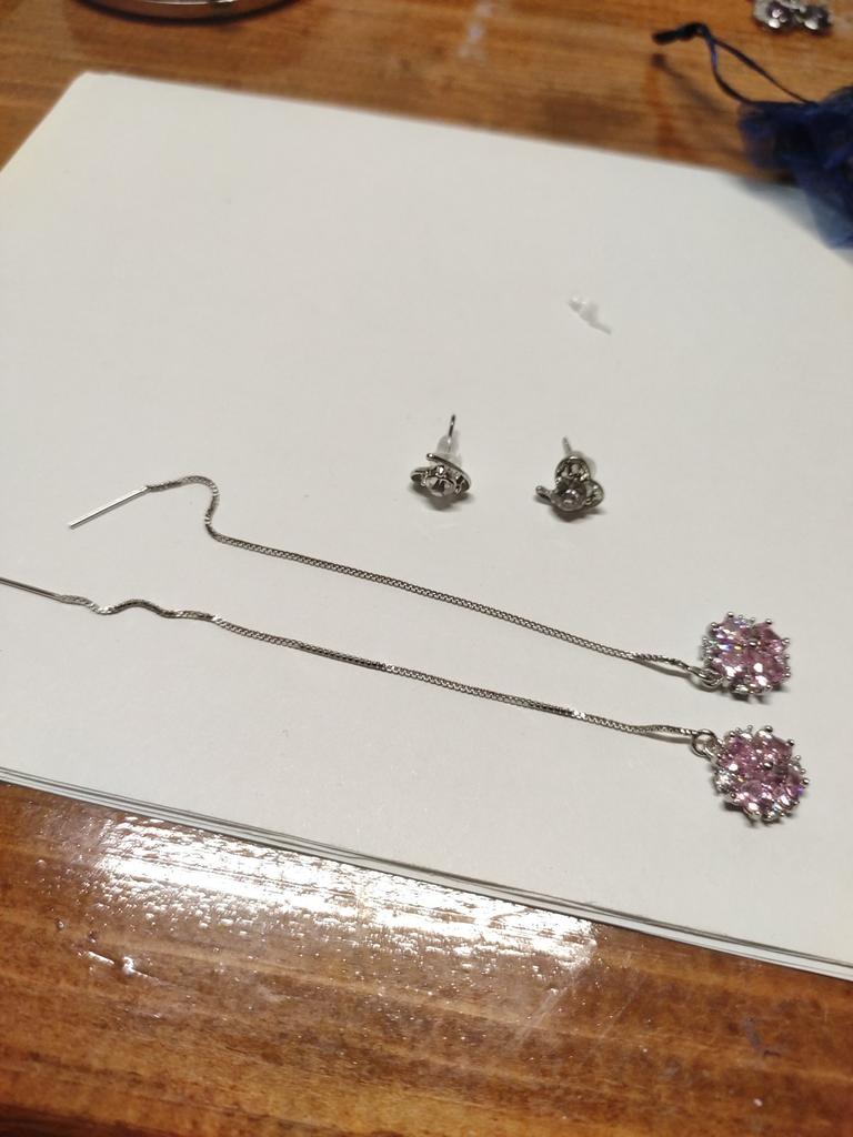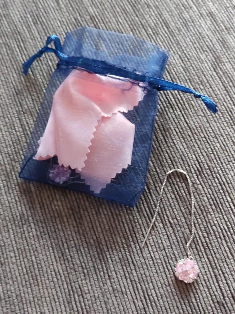 Серьги пришли в подарочном мешочке с ещё одними маленькими гвоздиками в подарок. Красивые, но есть ощущение, что могут быстро выскользнуть из мочки уха, нужно будет ставить фиксатор как для гвоздиков.