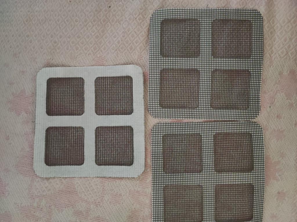 Сеточки получила, как и заявлено 3 шт, , 10*10, так на первый взгляд, вроде ничего, отклеила на один уголок, приклеила на сетку. Что могу сказать, это хорошо будет на неделю наверное, пока сетку не помоешь, уж очень я сомневаюсь что будет держать. Сегодня наклею, а позже отпишусь, пока спасибо продавцу. Наклеила , что могу сказать вроде приклеилась довольно нормально, ну вид как накладка, не очень то и красиво, я раньше просто клеем клеила, мне нравится больше (там фото просто в низу с точкой - клей), посмотрим сколько держать будет