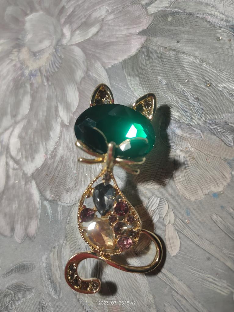 Прекрасная брошка,заказала 2-еще и на подарок,рекомендую любителям кошек,изящная,аккуратно выполнена,сияет!!!спасибо JOOM. А теперь рассмотрела что брошка то не такая как заказывала,глаза другие!!мне нормально,но для кого то может быть принципиально.