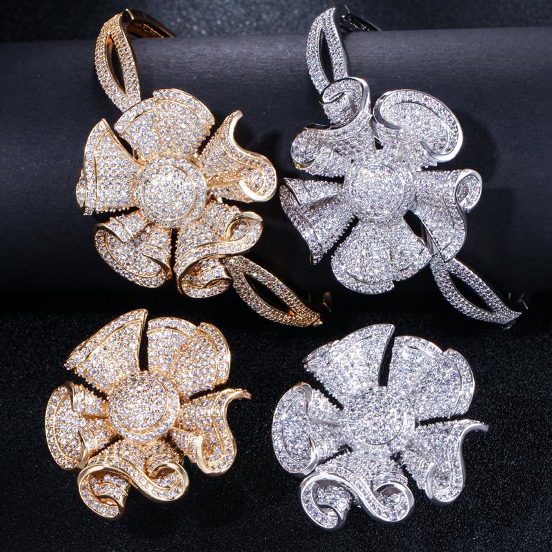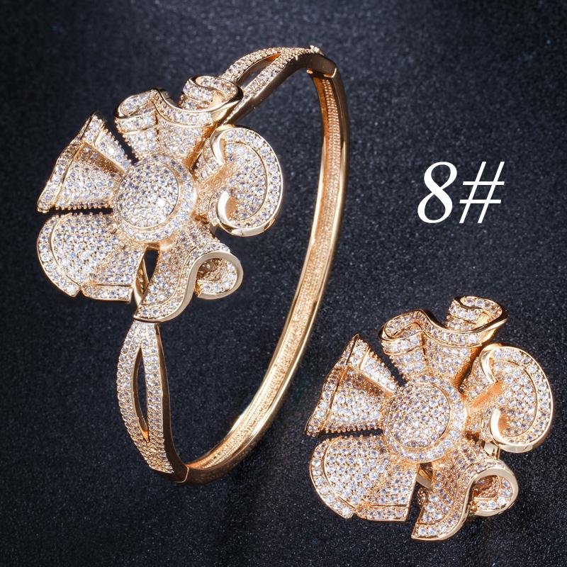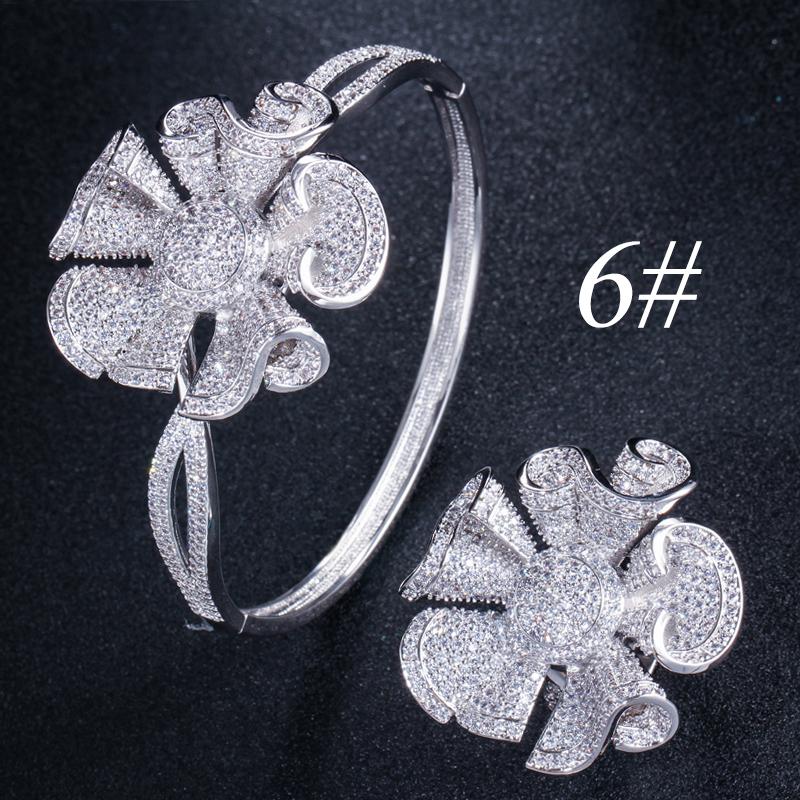 WWJ Супер Роскошный комплект обручальных колец и браслетов с цветочным цирконием