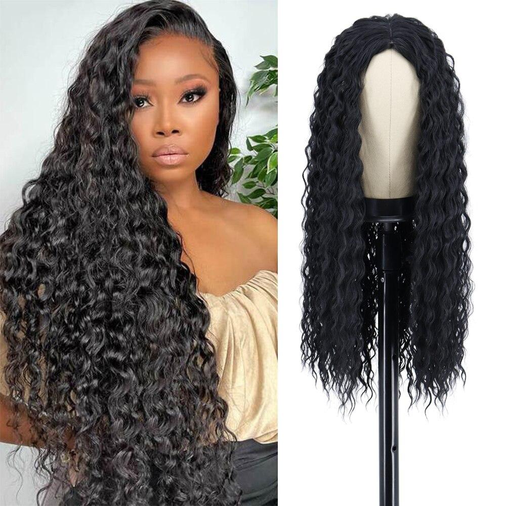 XINRAN Длинные афро-кудрявые вьющиеся парики для чернокожих женщин, парик с глубокими волнами, мягкие термостойкие волокна для косплея, ежедневные парики 13, 15, 26, 30 дюймов