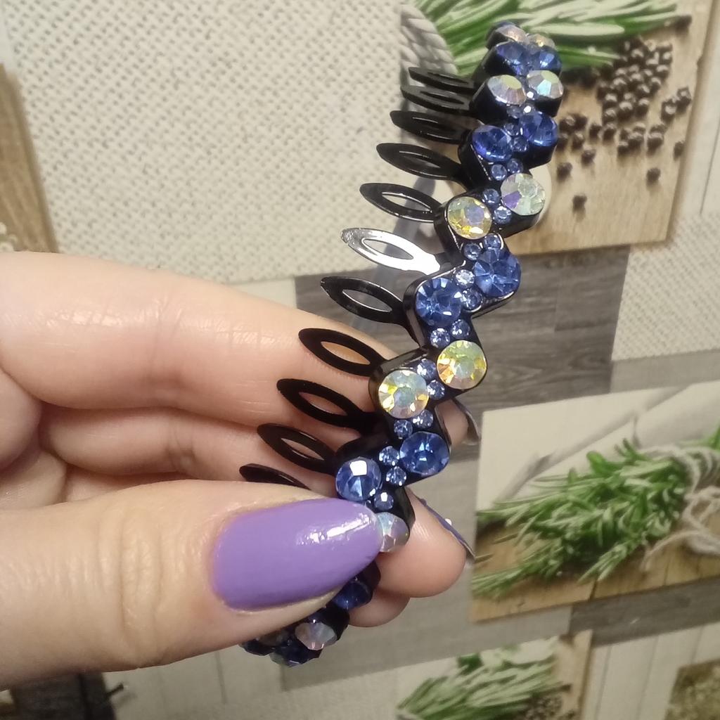Красивый ободок с сверкающими камушками 👌🤗 Ободок пластиковый, имеет острые зубья, которые его хорошо удерживают на голове 💯👍 Лёгкий,но не спадает 💯 Изящный и практичный аксессуар,но только, боюсь, что не на все объемы головы подойдёт 🤔 Максим до 52 р.☝️, дальше он раздвигается с трудом, можно сломать. Качество отличное 👍💯, без дефектов. Рекомендую 🤗 к покупке 👌