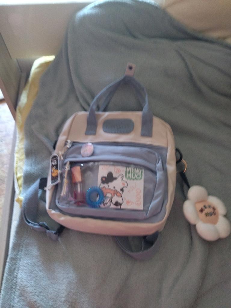 ОЧЕНЬ ХОРОШИЙ РЮКЗАК Как раз подошел под книжки В подарок положили значки и брелок^^ Качество хорошее Только не подошел под одну книжку.. Она у нас слишком большая