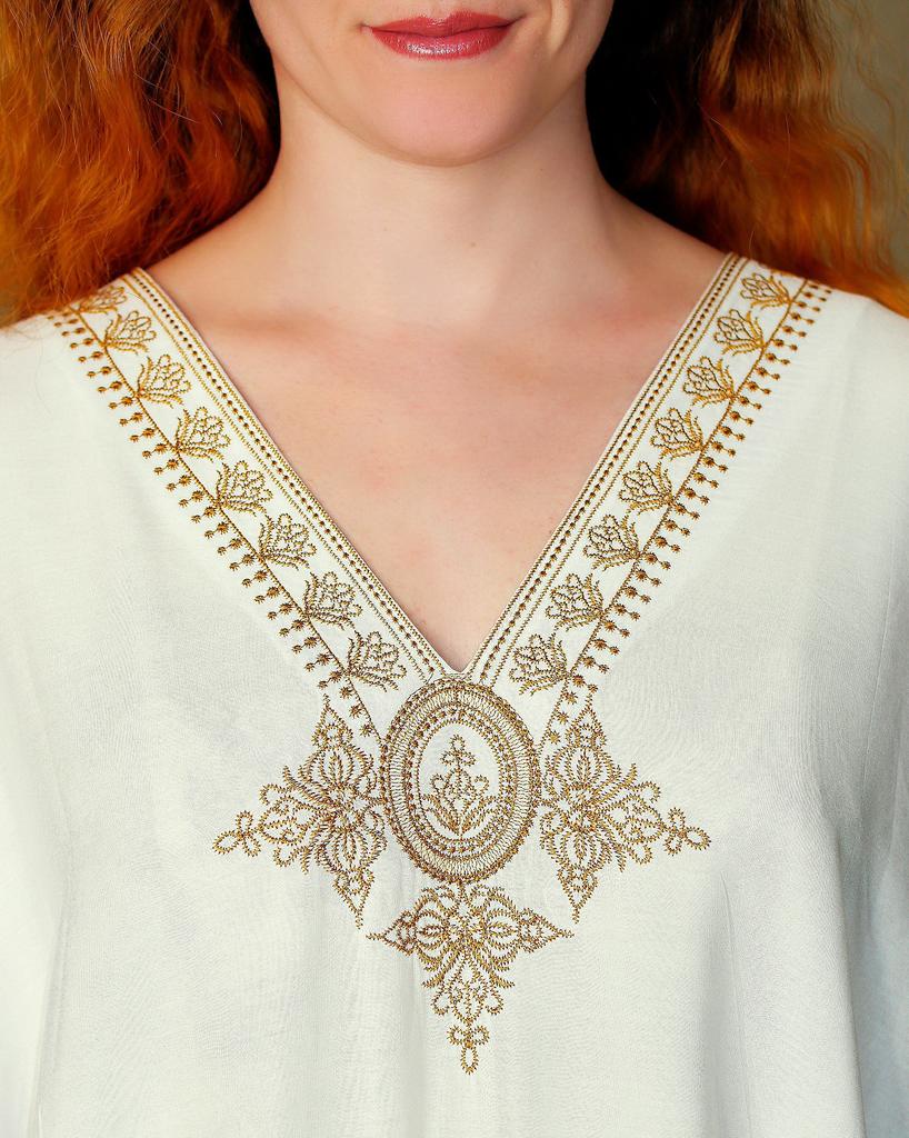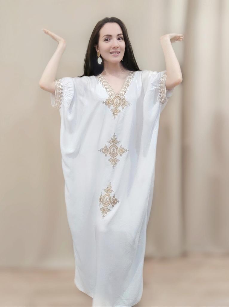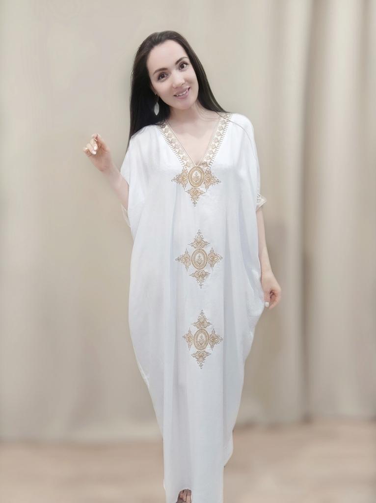 2022 элегантное золотое вышитое кафтан в стиле ретро с v-образным вырезом белое платье больших размеров женская одежда летняя пляжная одежда купальный костюм накидка — купить товар онлайн с бесплатной доставкой по всему миру!