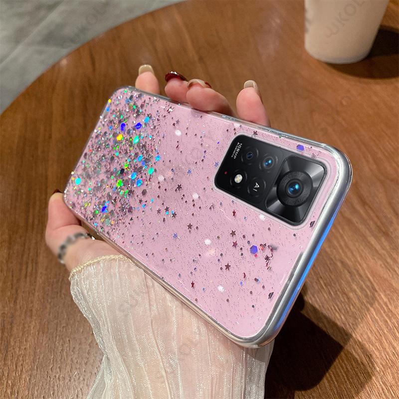 Прозрачный блестящий чехол для телефона Xiaomi 13T Pro 12T 11T Pro Poco X5 Pro Redmi Note 12 11 10 Pro градиентные радужные блестки