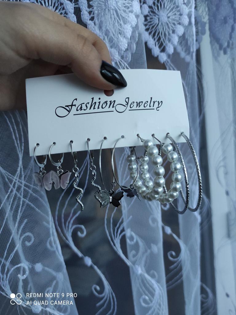 серьги очень хорошие!🤍 красиво смотрятся, не маленькие, то что нужно. ставлю 4 потому что заказывала золотистого а цвета а пришли серебряного 😕 а в целом они 10/10 👍🏻