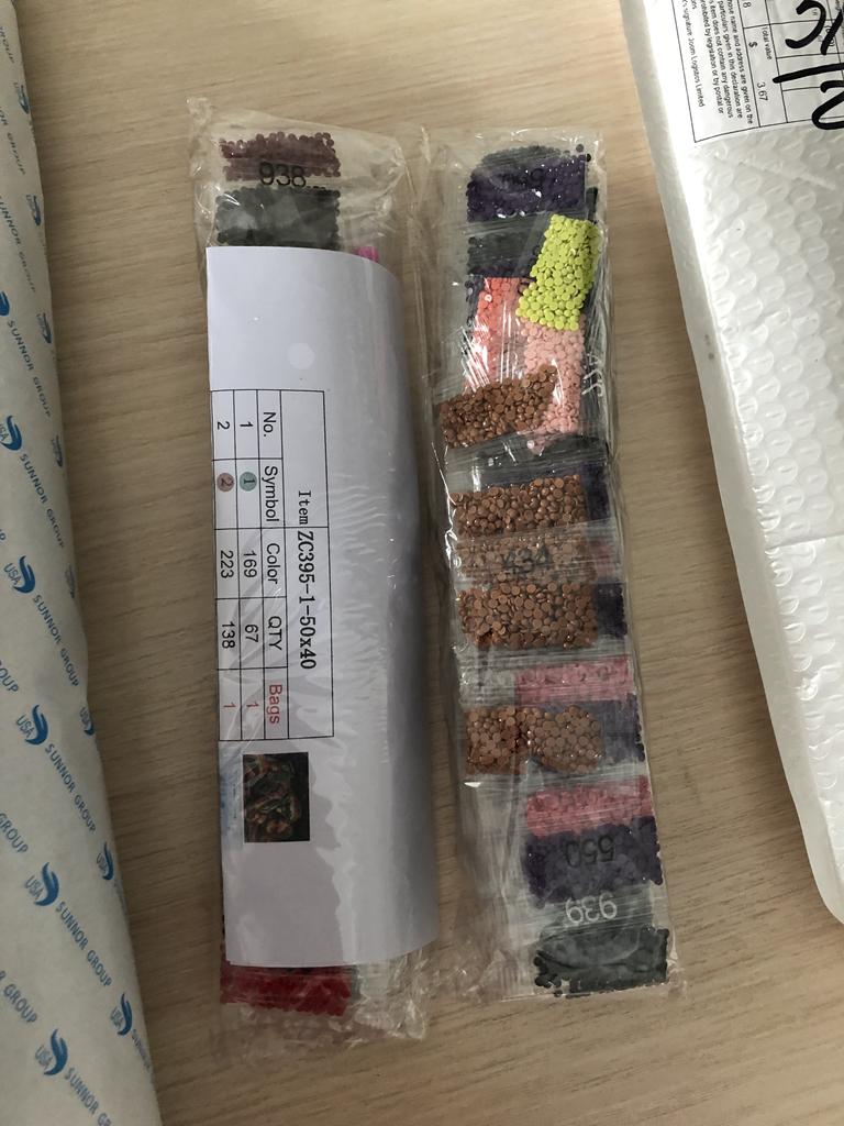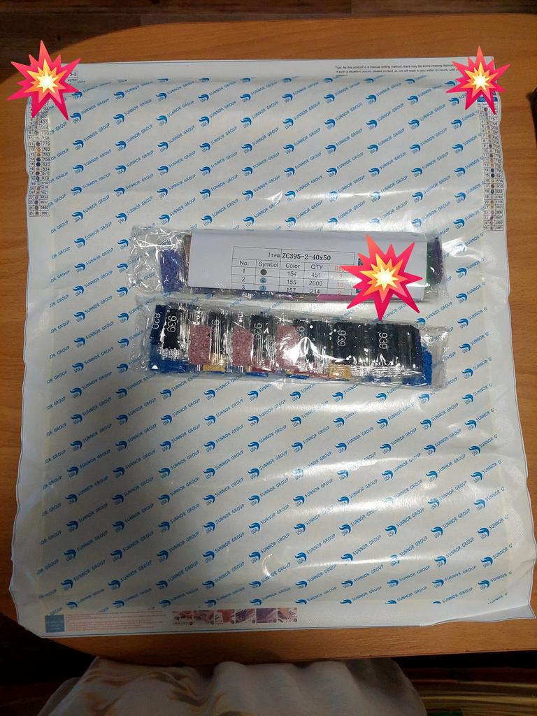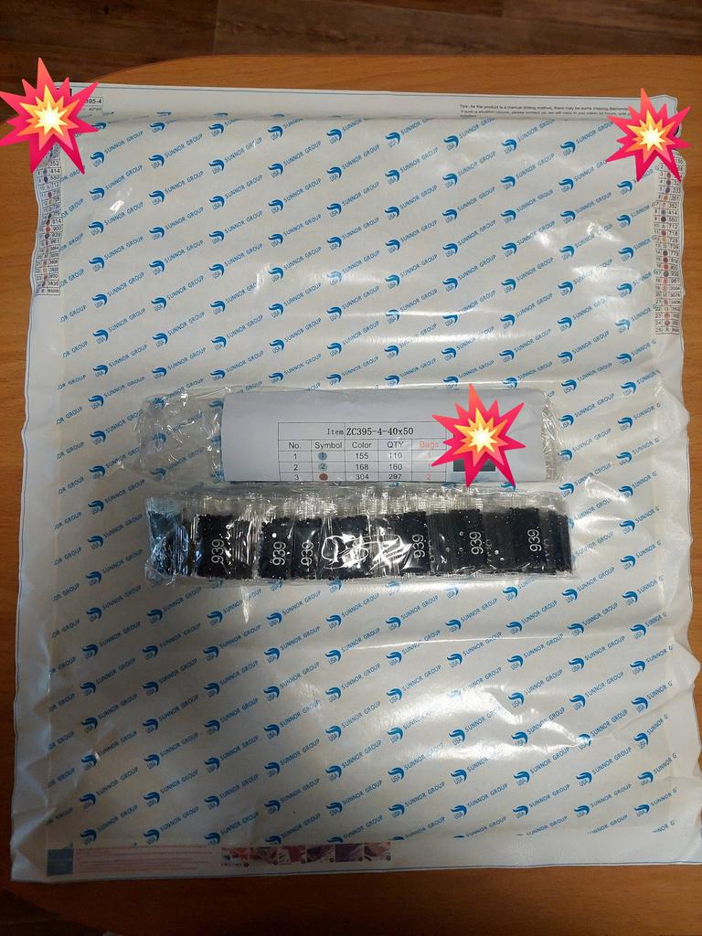 Заказ был сделан 28 января, ровно через месяц получен. Очень довольна сроком доставки! Упакован достаточно нормально, но полотно все-таки немного помялось по краям. Думаю, выровняется. В наборе стандартный комплект: лоток, стилус, липкая масса и немного зип-пакетиков. По обеим сторонам полотна схема, очень удобно. Прорисовка значков хорошая. Стразы в запаянных пакетиках, количество соответствует. Само полотно, на мой взгляд, тонковатое. Есть схема отдельно на листе. В целом заказом довольна. Посмотрю как будет выглядеть картина в готовом виде. Заказывать у этого поставщика буду.
