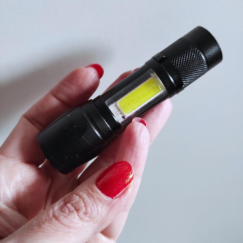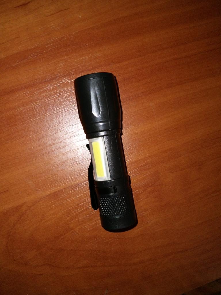 Фонарик. Доставлен фонарик в пупырчатом пакете без повреждений. В комплект входит зарядное. Удобно помещается в руке. Практичный и удобный. Удобно брать с собой в сумку или в карман. Есть прищепка и можно подвесить фонарик. Имеет встроенный аккумулятор. Кнопка включения и выключения. Три режима:основной,боковой свет и мигание. Покупкой довольна. Рекомендую.)) Приятных покупок.💖💖💖