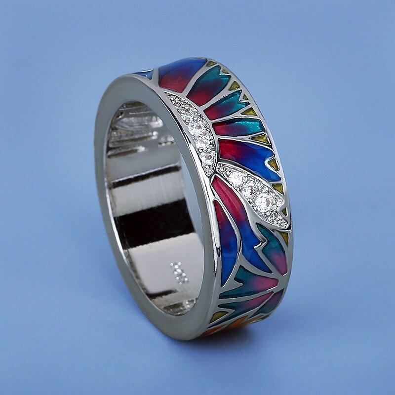 Классическое красочное эпоксидное кольцо в форме солнца, женское кольцо, изысканное обручальное кольцо, эмалированные обручальные кольца ручной работы — купить товар онлайн с бесплатной доставкой по всему миру!