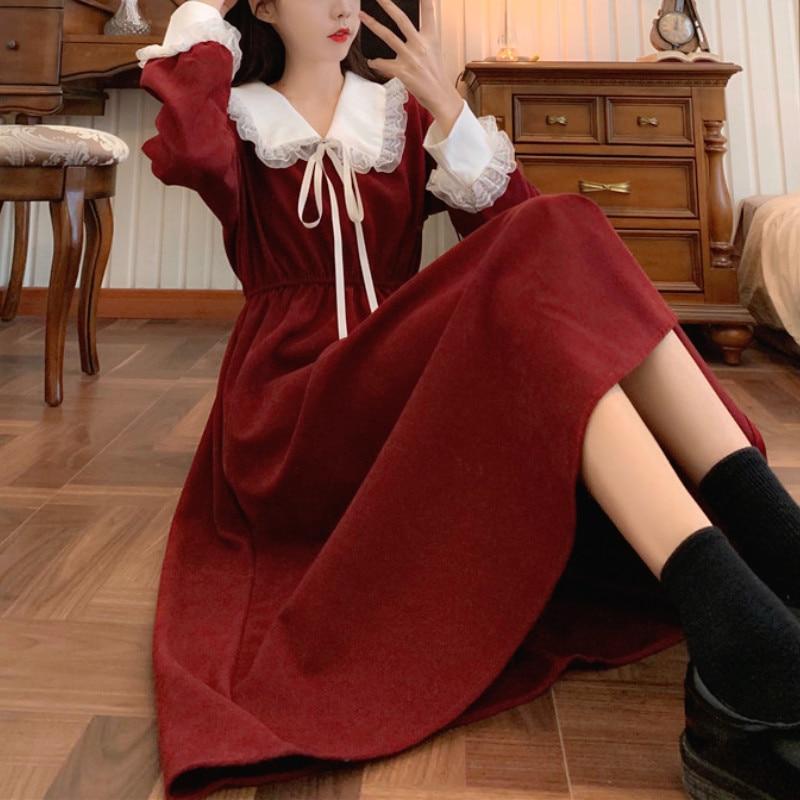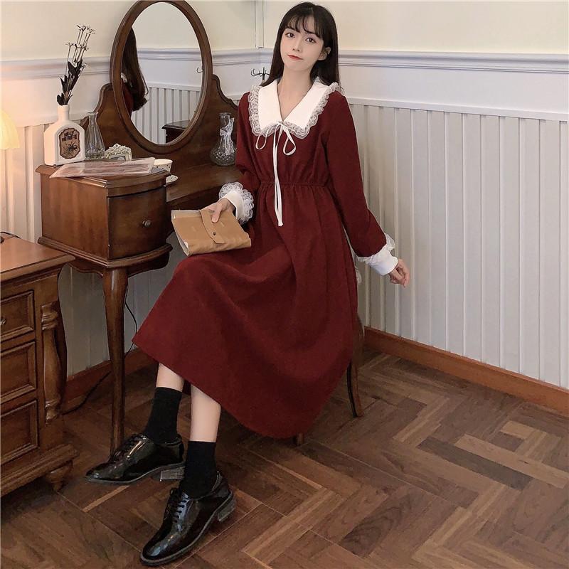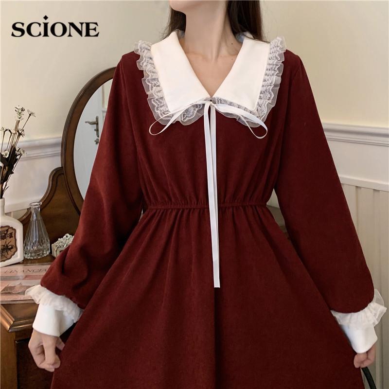Милое элегантное платье миди в стиле Лолиты, женское осеннее лоскутное праздничное платье, женское повседневное кружевное корейское платье в стиле ретро, женская одежда, осень 2020