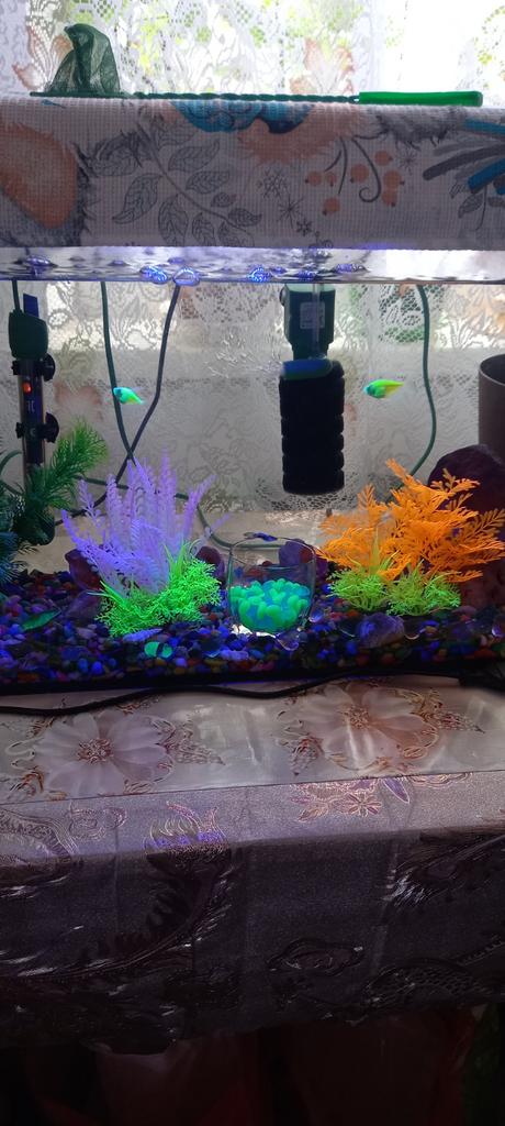 Очень красивые, розово зеленые под синим светом вообще меняют цвет и круто выглядят. Но! через месяц становятся жесткими. Рыбки их избегают, т.к. могут поранится.