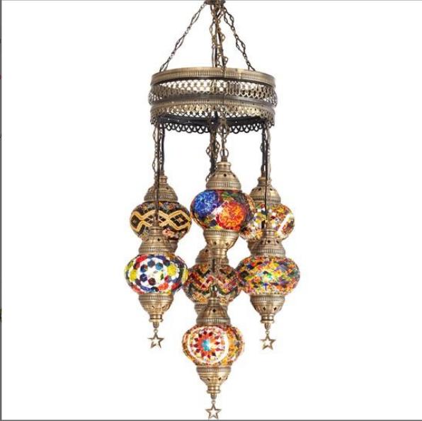 7 шт. Турецкая мозаика лампа аутентичное освещение антикварная лампа потолочный светильник тиффани подвесной светильник люстра цветная мозаика стекло