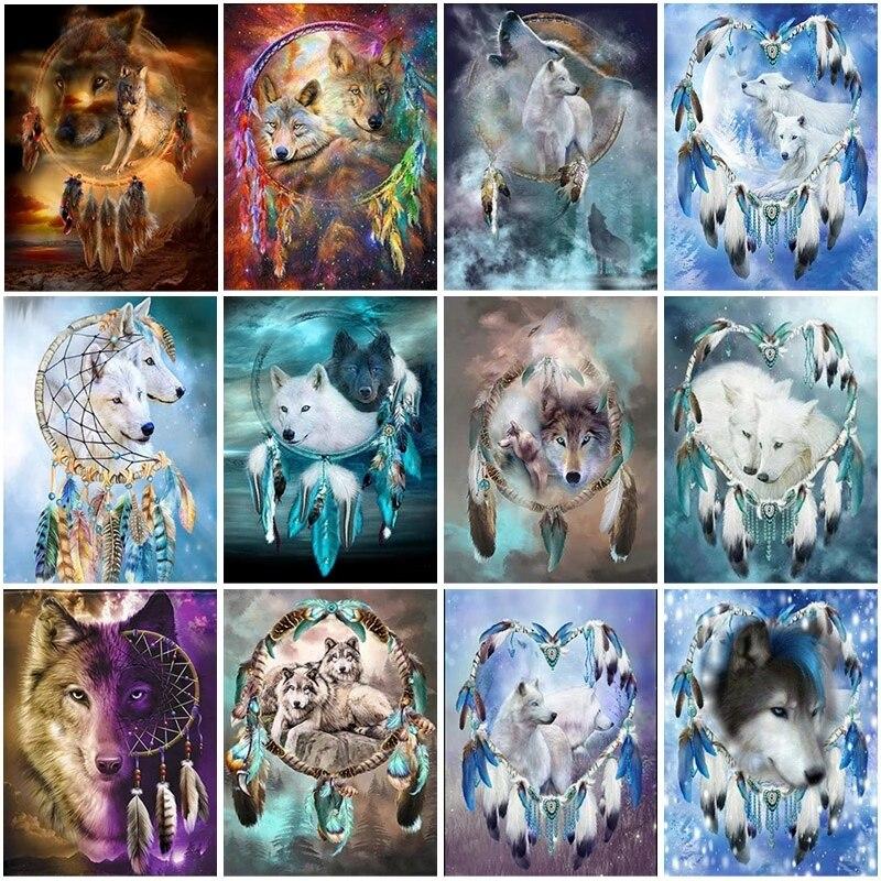 DIY 5D алмазная живопись волк Ловец снов Алмазная вышивка животное вышивка крестиком полная круглая дрель ручной Hoem Декор подарок