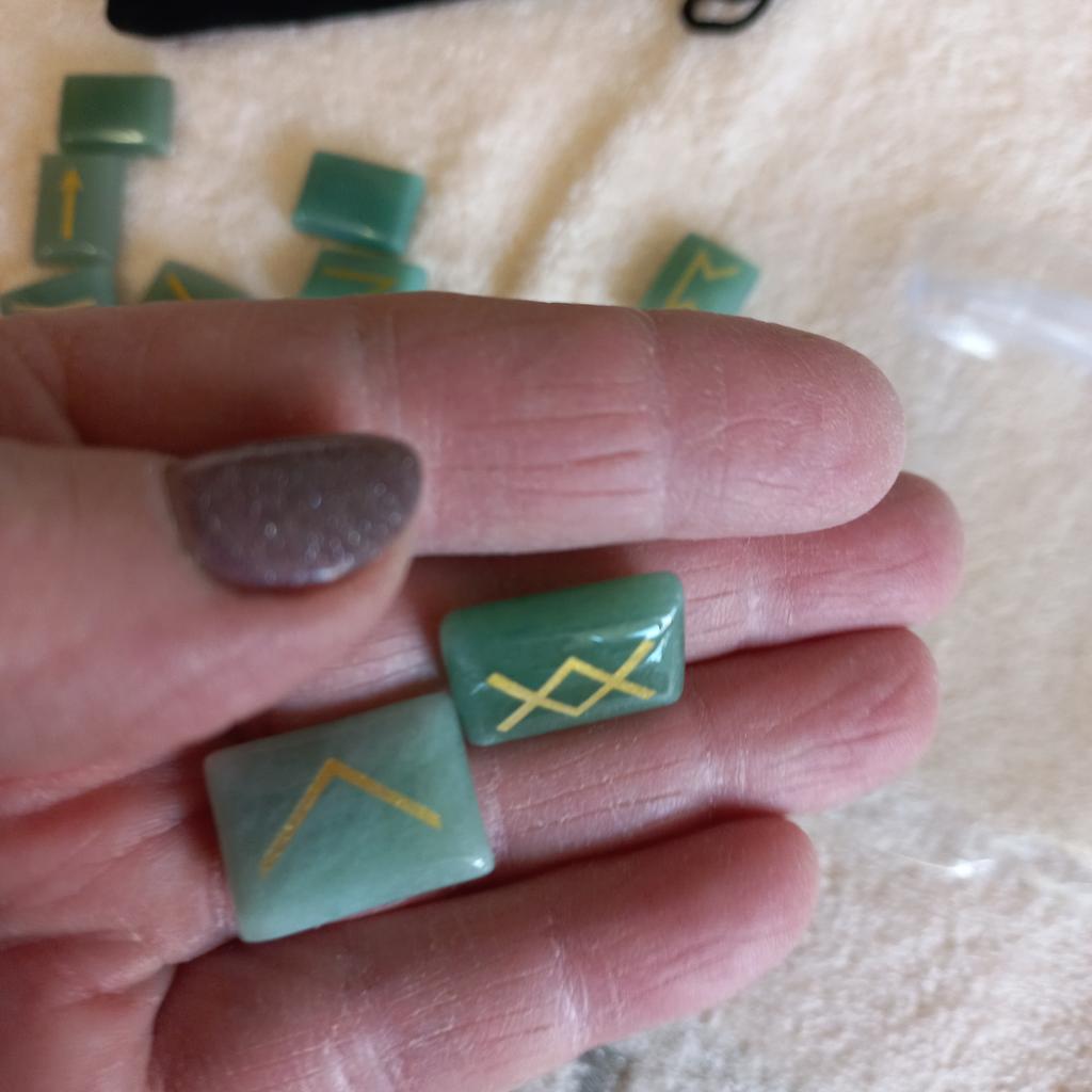 Руны заказала голубые , осень нравятся , приятно брать руками хорошая , аккуратная шлифовка.., правда одна руна пришла с большой трещиной но зато одну положили запасную..В подарок продааец положил черный бархатный мешочек для рун , очень приятно...Спасибо пррдавцу ...Кто сомневается , рекомендую...💯👍🙏