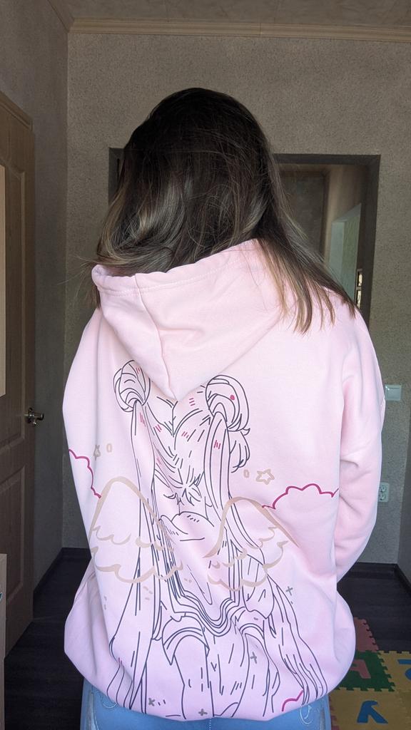 Всем привет💥 Сегодня обзор на классную женскую толстовку с Сейлор Мун на спине🤩 Качество отменное. Все прошито. Ниток и дырок нет Материал очень приятный к телу. Внутри есть подкладка на флисе Размерный ряд огромный. На мне S. Мои параметры 92-70. По факту толстовка оверсайз (обожаю). Она отлично села, закрыв половину бедер. По низу резинка, но она скорее просто для красоты и логичного фасона Принт на спине - не наклейка. Он вбит в ткань. Так что при стирке все останется на месте. Капюшон средней глубины. Есть косячок с краской от принта на спине, но он не сильно заметен, поэтому звезду не снимаю За свои деньги толстовка -огонь. Однозначно рекомендасьон ✅