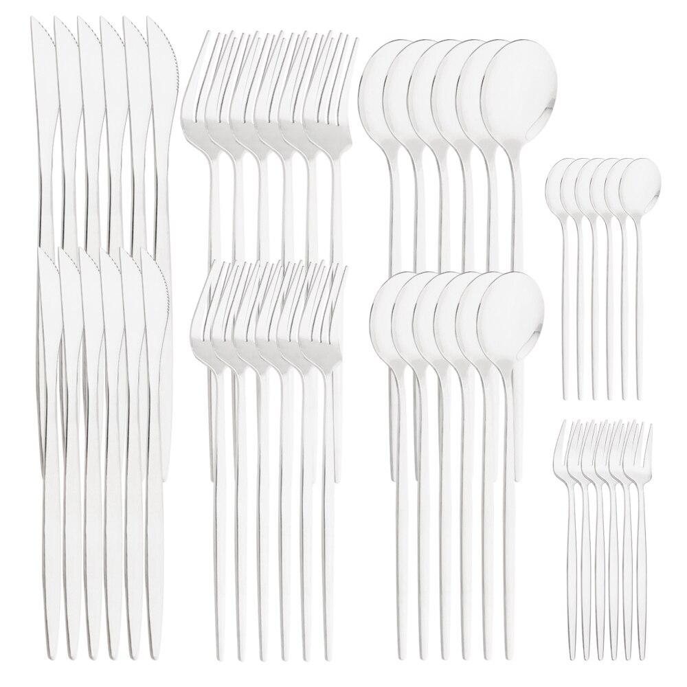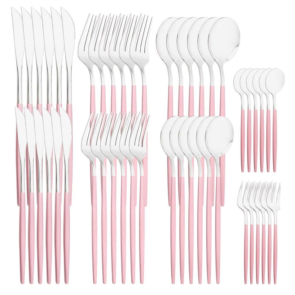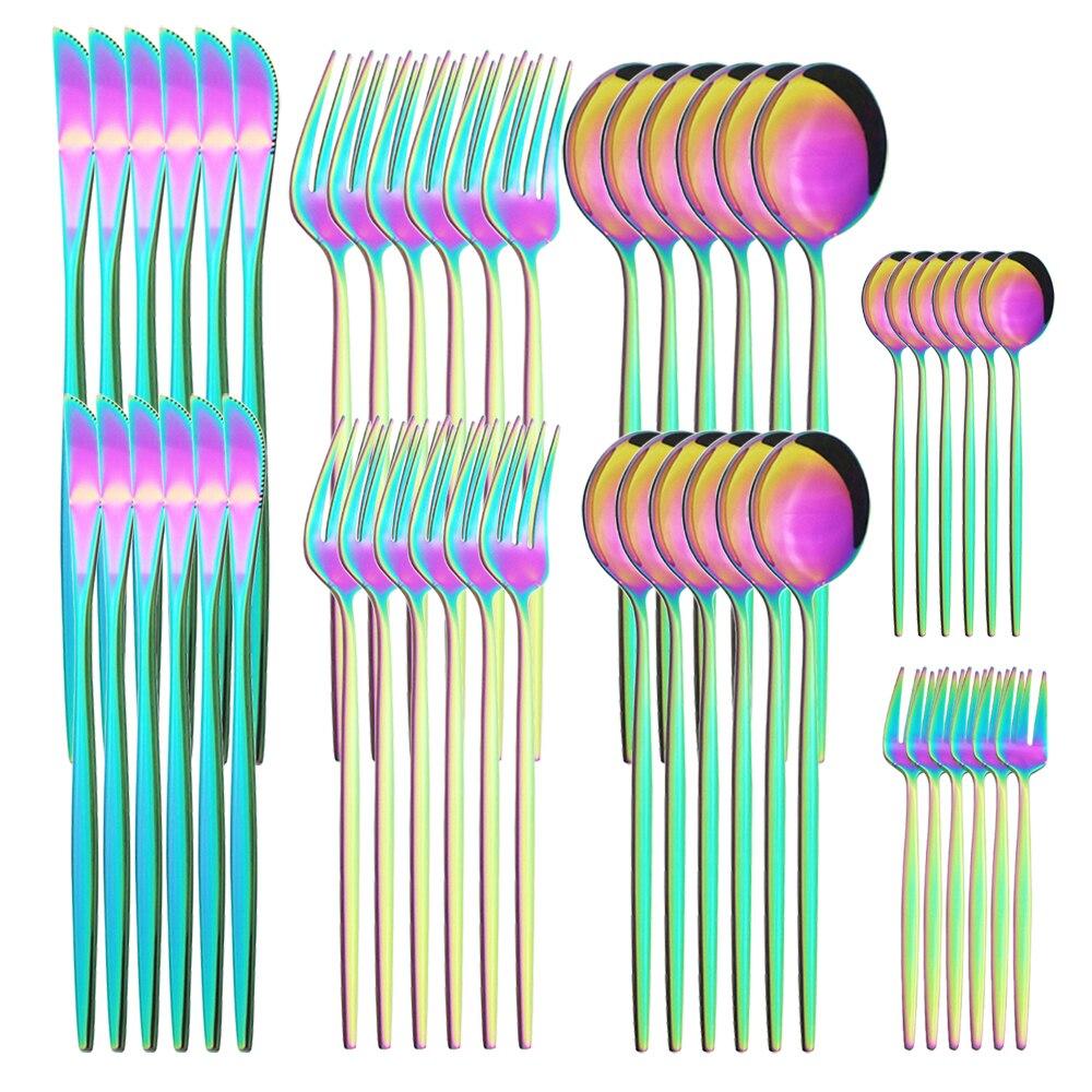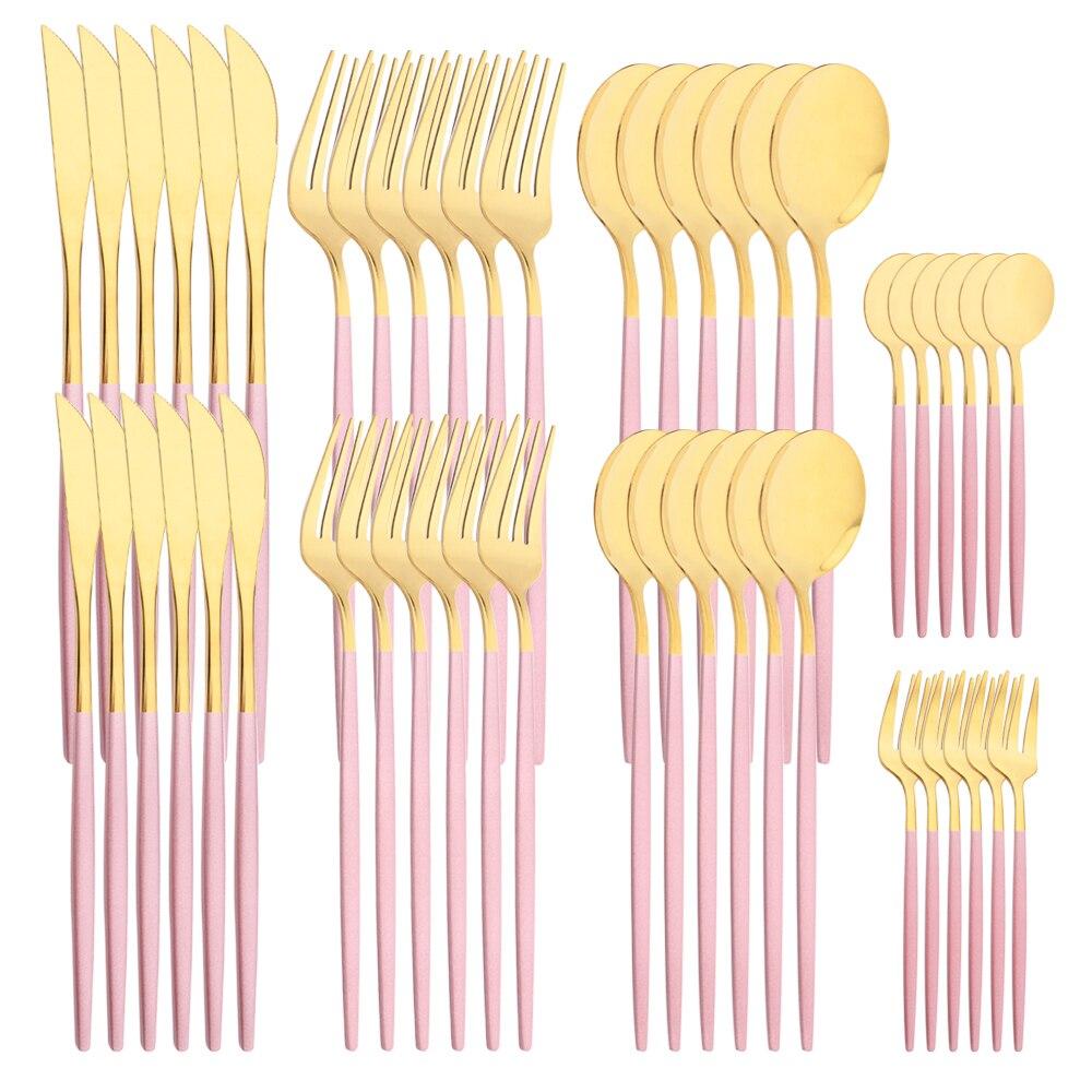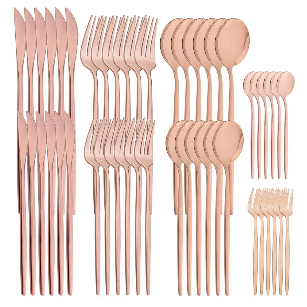 Зеркальный набор столовой посуды из розового золота, столовые приборы из нержавеющей стали, 48 шт., десертный нож, ложка, вилка, ложки, чайная ложка, столовое серебро, набор посуды