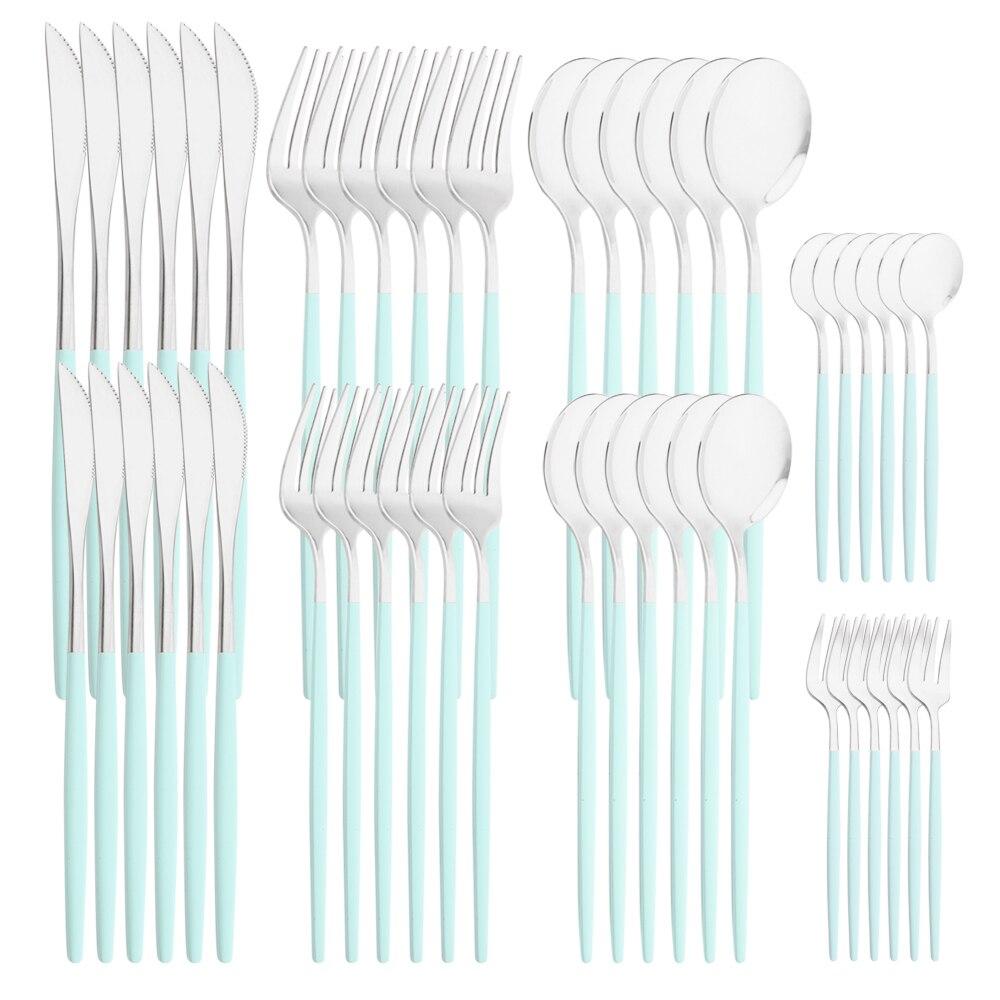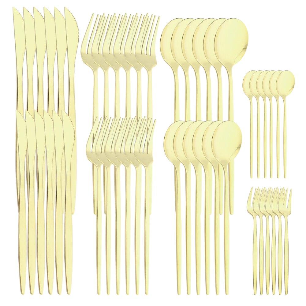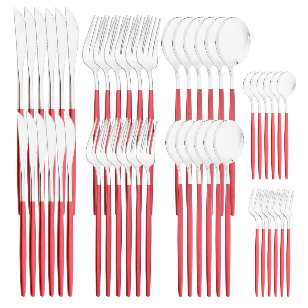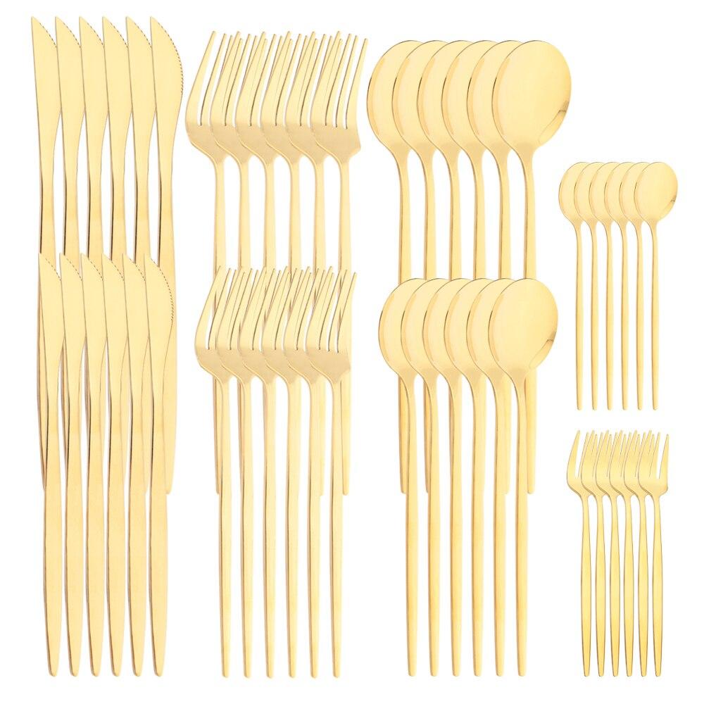 Зеркальный набор столовой посуды из розового золота, столовые приборы из нержавеющей стали, 48 шт., десертный нож, ложка, вилка, ложки, чайная ложка, столовое серебро, набор посуды