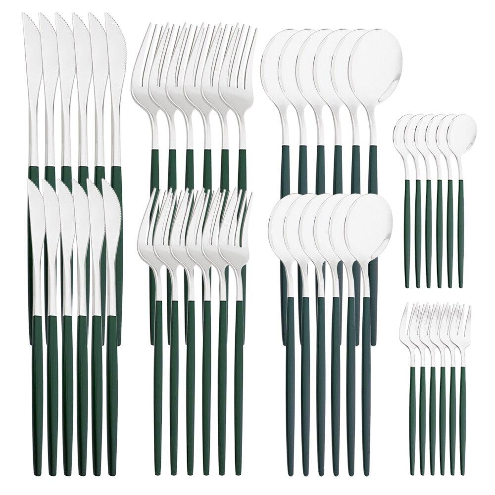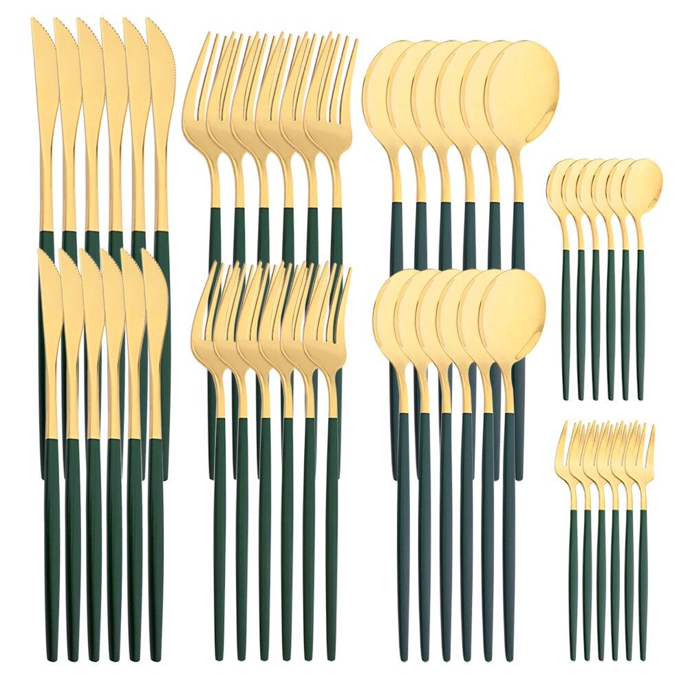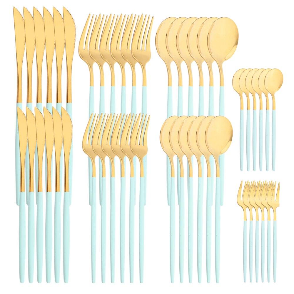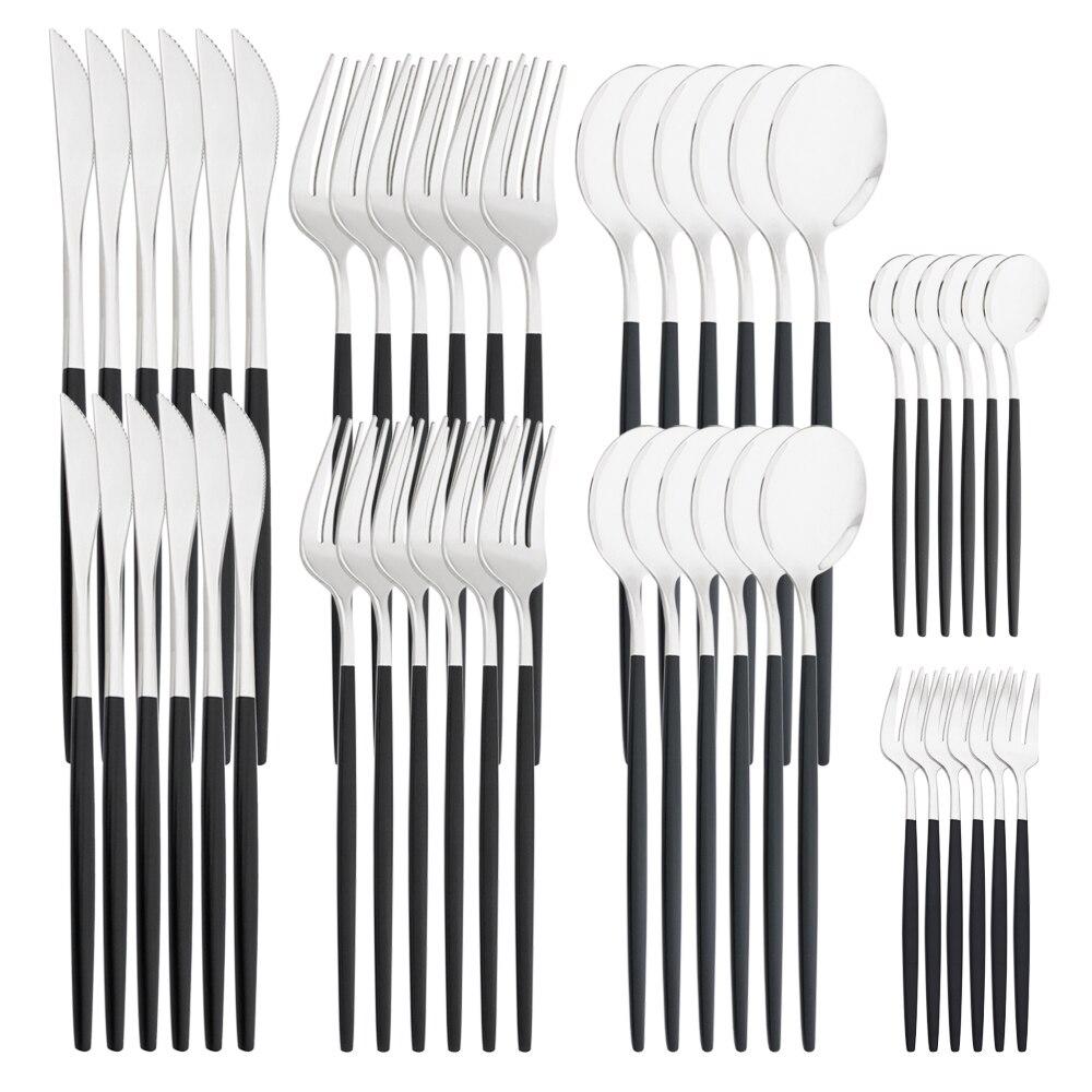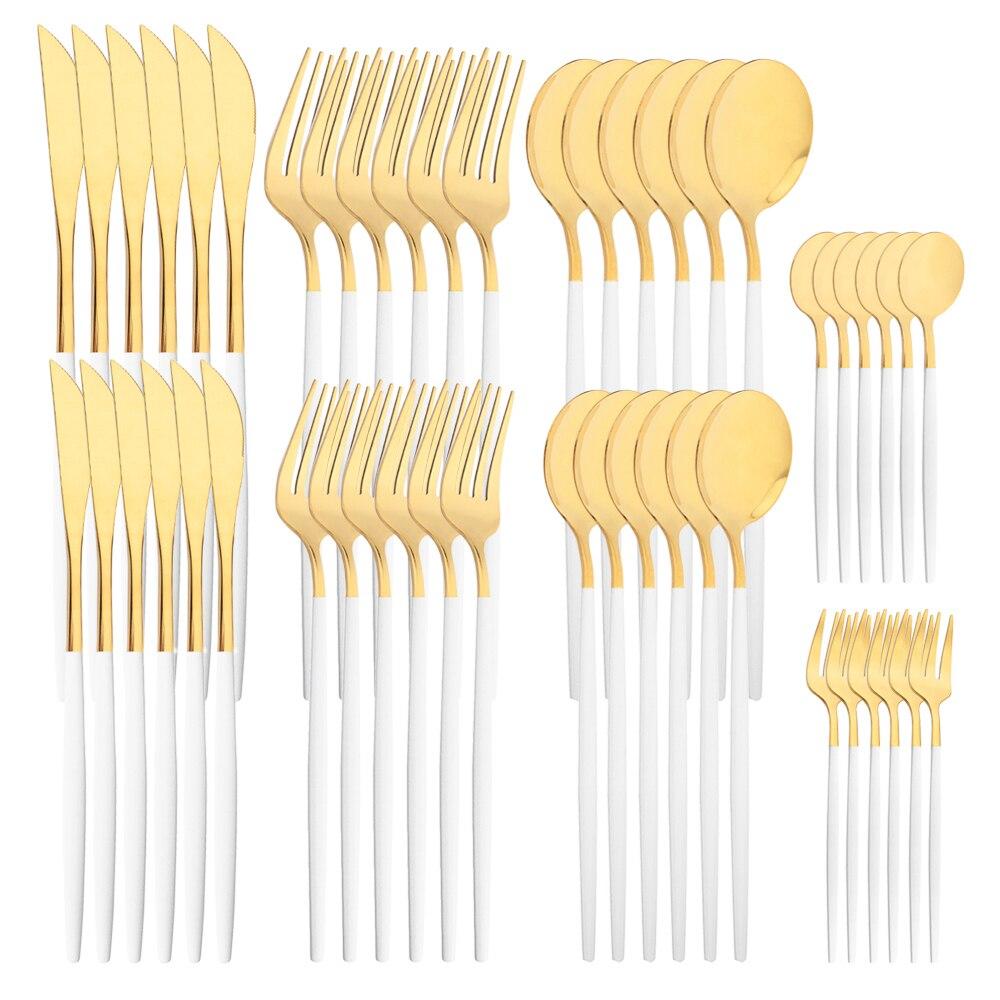 Зеркальный набор столовой посуды из розового золота, столовые приборы из нержавеющей стали, 48 шт., десертный нож, ложка, вилка, ложки, чайная ложка, столовое серебро, набор посуды